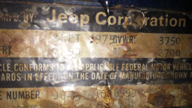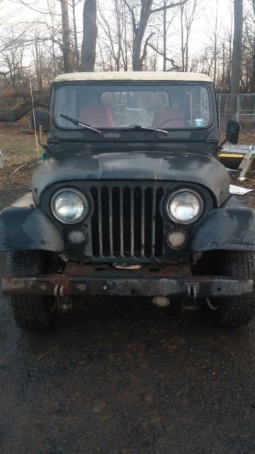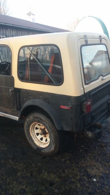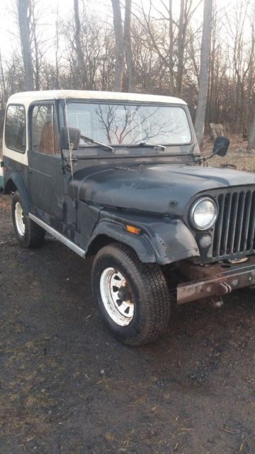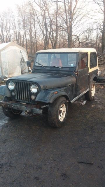 I am selling my 1976 CJ-7 Jeep In-Line 6 cylinder...Body and frame in decent shape, has been driven in the winter and has seen NY salt...For those that want to joy ride in it...it will need an inspection...it was last inspected in FEB 2013...the speedometer, RPM gauge, fuel gauge do not work..also the fuel tank is behind the rear seat (the previous tank rotted out and was replaced with fuel tank in back when I bought it)...4x4, lights, and horn work good...Engine starts right up, runs a little rough at first, then smooths out...Tranny shifts great...New battery and some new plugs and wires...Brakes work...Nice hard top canopy, however, the right hinge is a little loose due to some rust, nothing major...I'm probably forgetting something but basically, this is more of a lot/farm truck than a joy rider...but it could certainly be a joy rider with some work...but this is definitely something you could have a lot of fun with and still use in a practical manner... Shipping is available Please message before hitting buy it now...thank you
