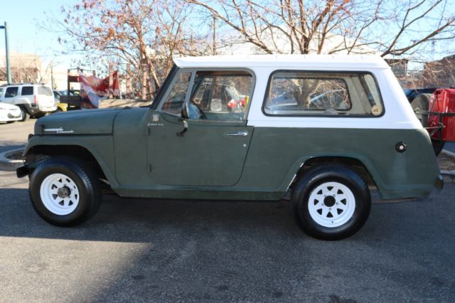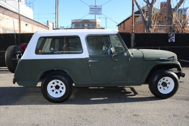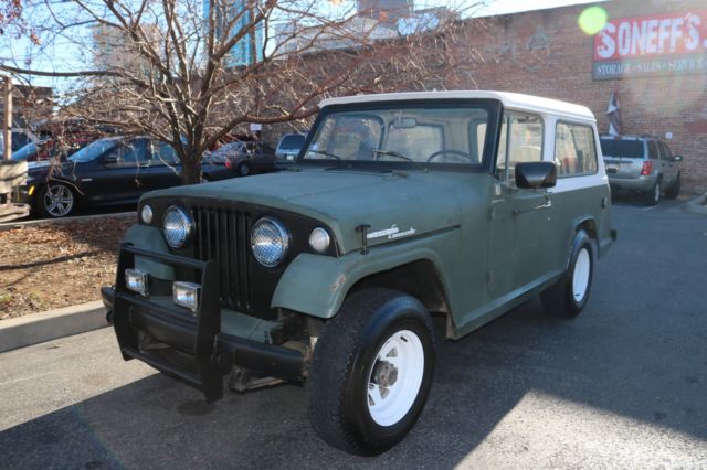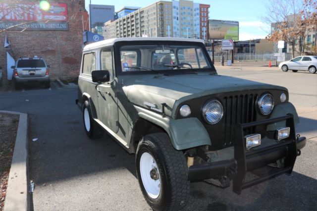 1969 Jeepster Commando in original condition ready for winter fun. Vehicle has a solid body, good interior, spare, auxillary gas can rack, vintage army green with black interior. Peppy 6 Cylinder 3 speed, 4 wheel drive. #jeep #commando #1969jeepcommando #4wheeldrive |