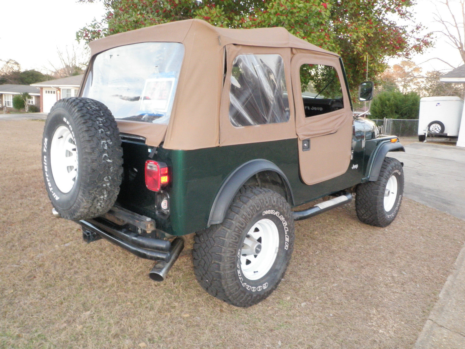 | Up for sale is my 1985 Jeep CJ7. This has been a very dependable Jeep (my daily driver) and fun to drive. but unfortunately it is time to let it go. I bought a family friendly 4dr truck to make room for my 1 and a half year old son and growing family. Below are some specifics about the Jeep. Motivated to sell. as I will be moving in a month or so. - Chevy 350 Engine with low miles. less than 35k miles on the crate motor- 4spd manual transmission- 33x12. 50 Goodyear Duratrac tires with less than 10k miles on them- Fiberglass body ( roll in bed liner in the interior )- New soft top less than two years ago- JL Audio 10" Sub and speakers with a Pioneer head unit- SRS Shackle Reversal System on the front to improve the ride- Gets about 16 mpg- Also comes with black strapless bikini topPlease Feel free to contact me with any questions. I am a little busy lately. but I will respond ASAP |