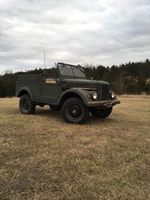 1956 GAZ 69 This vehicle was originally from the E. German Army and was found in a field in W. Germany the day after the wall came down. The US Army then took it to Ft. Sill where it sat in the base museum. After funding for the museum was lost a Army LTC purchased the vehicle, unfortunately the records of its provenance was lost with his passing. When I got the vehicle it was in primer and needed some work. I found an individual in Bulgaria who has a large amount of NOS parts for the GAZ. I have replaced the water pump, starter, head, all gaskets on the engine, fan belt, clutch, had wiper motors rebuilt, throw out bearing, transmission, all axle bearings, master cylinder, brake lines, brake pistons, brake shoes, all associated brake hardware, added lock out hubs to front axle, radiator flushed and pressure checked, auxiliary fuel tank cleaned and sealed and probably a couple items I'm forgetting. Currently running with a distributor from a ford flathead with pertronix electronic ignition, but do have NOS distributor and many additional spares to go to buyer. I painted the exterior in OD, put brush in liner on interior floors, cleaned and under coated the bottom. Having been stored inside it is rust free. The electrical system has been gone through and everything works. The soft top was damaged in transport from Ft. Sill, but I do have all but the windshield bracing for a new top. Since I only drive the vehicle when it's nice I have not bothered to purchase one, though they are available. The two items I have not addressed are the cleaning and sealing of the main tank and the reupholstering of the front seat backs. The vehicle drives great, easy starting and there are not many in the US. I am happy to provide additional pictures to interested buyers. |