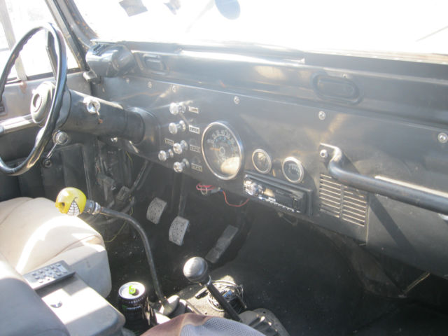 | -258 straight 6 (motor)-5 speed standard transmission -Weber carburetor -new 3 core aluminum race radiator -new water pump-new thermostat housing -new thermostat -new slotted and drilled rotors (need to be installed) -smitty built center consul -all 5 matching rims -33 bfg all terrains tires-3 inch lift -soft half doors -high lift jack -cd player with 6x9 speakers needs minimal work to be up and going ie new battery front rotors and pads need replaced (new rotors come with it) and a tune up |