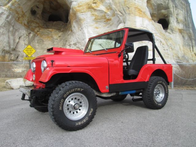 I have a very nice 1977 Jeep CJ5 that has been modified. It has a V8 304 built, 3 speed manual, 4x4, Dana 20 Transfer Case, Dana 44 Rear Axle, Dana 30 Front Axle, aftermarket wheels, fuel cell, tilt front end, headers, custom interior, and Bimini top. This Jeep has been totally been redone to a very high standard. The Body is very straight, motor is super strong, transmission shifts great, it sounds awesome, drives great, and is just a super fun TOY. You will turn lots of heads with this one. Give me a call with any questions 636-393-0642 or 636-744-4177. Thanks for looking.
