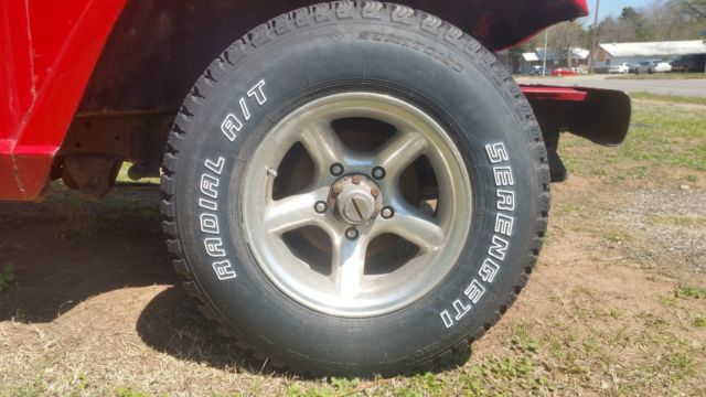 1968 Jeepster Commando 4x4 with the removable hardtop. Completely original 255 "Dauntless" V, 3 speed manual transmission, dana 20 transfer case anddana 44 rear with a dana 27 up front. Odometer reads 25,132- I have no way to verify it but it has probably rolled over although it is hard to believe with the condition of this jeep. The V6 runs with no issues and 3-speed manual trans shifts perfectly, both are great for cruising speeds around town and will maintain 60-65mph without straining. Tires and wheel are aftermarket. The steering column has been replaced with one from a S10 truck and the seats have been reupholstered, are comfortable however there is a split in the driver's seat bottom.Jeep was bought a few years ago just as it is now. I have the passenger door panel but the window regulator for the passenger door does not work. There appears to be a patch panel (about 6"x6") on the tub just left of driver's seat. The paint has pealed on the hood (see pictures) and while taking pictures I noticed the back hatch has some surface bubbling. This is an extremely fun and easy car to drive. It is safe, reliable, and economical. It has been a great weekend cruiser. This Jeepster has never been abused off road. It has always been well maintained. This vehicle as a great investment opportunity that will continue to rise in popularity and value. I will provide assistance with loading if you are having the vehicle shipped. I am listing this vehicle for a friend who is trying to make some room in his garage. If you have any questions or need any additional information just let me know, i'll get what you need. |
