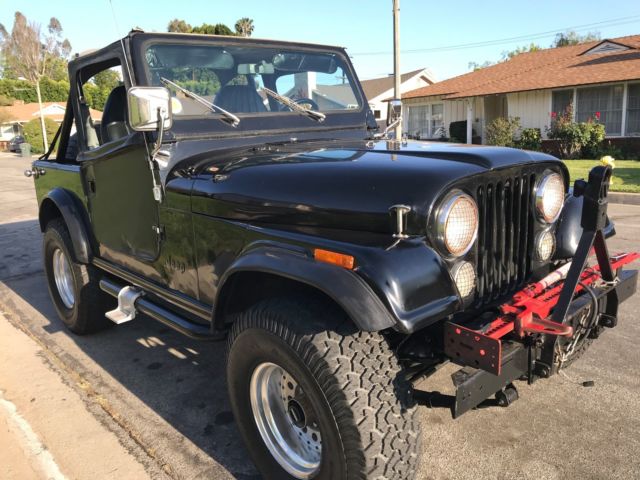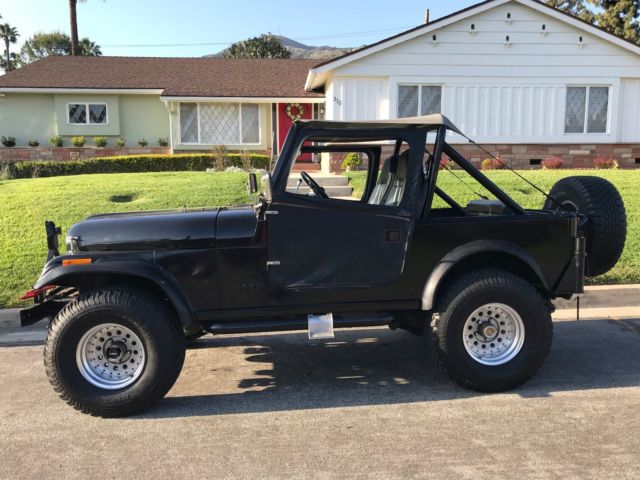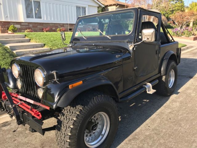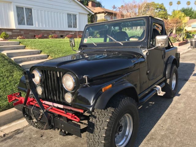 Currently up for auction No reserveis a 1981 Jeep CJ5 4wd Black With bikini top Black leather Seats Special Ordered Factory Automatic Power Sheering Power Brakes,also has towing winch Tilt, wheel CB radio 4.2 liter 6 cyl All factory Smog Equipment is still intact and functioning passed California Smog, also Californiatitle in hand alloy wheels with new tires. One family owned since new 87,563 miles,Carburetor has been rebuiltRuns absolutely sweet Turn key driver qualityrare special ordered nicely optioned CJ5 Ready to enjoy.And drive I always got compliments on the roadCall for more info (818)751-9857 Click Here to View Video TERMS OF SALEI Only Acceptcash in person or bank wireaNon-refundable$500 deposit will be required 24hrs after the auction ending NO PAYPAL all inspections are allowed during the auction vehicle is being sold as is there is no warranty or set aside description is not to be asumed or used as a warranty of any type i have described this car to the best of my knowledge an can anwser any questions through ebay or phone (818)751-9857 any low feedback bidders must contact me before bidding or bid will be removed if the buyer does not agree to my terms i reserve the right to relist or proceed to any other interested buyers buyer is responsible for shipping i can store the vehicle until shipper arrives |