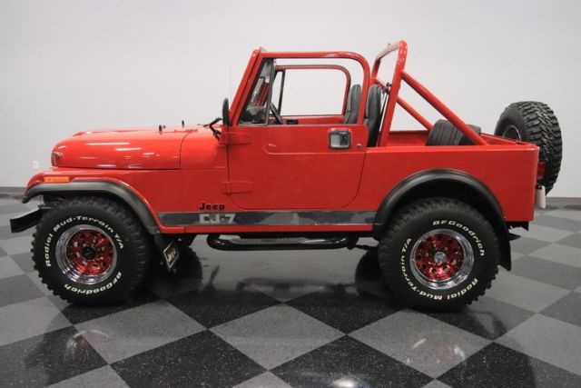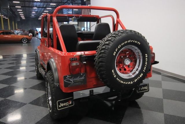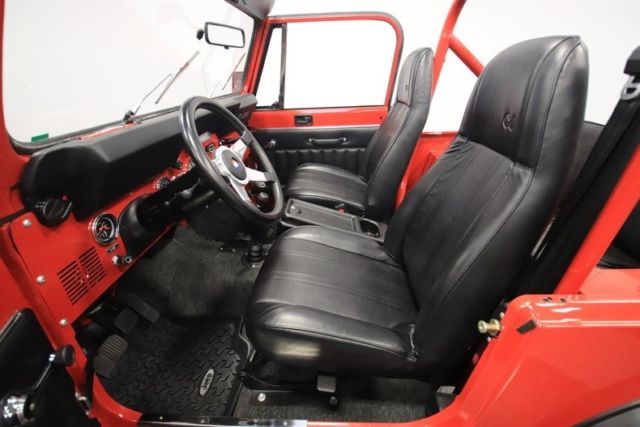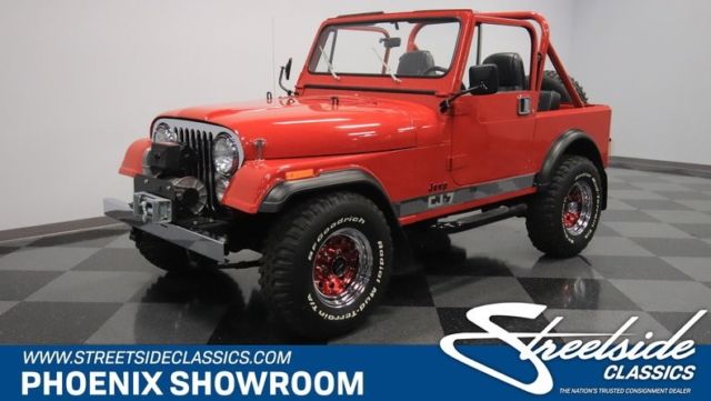 Here's a truly an amazing find. After all, this 1986 Jeep CJ7 was originally optioned to be a terrific off-road machine. But with only about 2,500 miles on the odometer (averaging less than 80 miles annually!) this is also one of the best-preserved examples you'll find anywhere. 1986 was the final year for the legendary CJ7, and so this 4x4 has been treated with the propped respect. The factory-correct Sebring Red has a terrific presentation and proper lineage. In fact,... all the right pieces look great, including the fender flares and swing-away full-size spare holder. Even the rear mud flaps look like they are straight from the dealer's accessory catalog. That's what you get with an ultra-low mileage Jeep that was sold new only 20 miles from our dealership today (we even have the original window sticker to prove it!) But more than just history, you'll love this CJ for its upgrades in style and substance. The chrome grille, chrome bumpers, bright rocker trim, and metallic maroon wheels give this some terrific extra flair. Plus, there's a Warn 8,000-lb winch, tubular side steps, and trailer hitch. So while this pristine example looks like it never has left the pavement, it still has the equipment to get the job done right now. Step inside and there are more indications that this Jeep has led a good life. The interior is fairly original with some nice worthwhile upgrades. Factory bucket seats are quite comfortable, and the floor has nice carpeting for better luxury and insulation. There's a factory center console that offers the security of a locking compartment as well as the convenience of cup holders. And the dash has been optioned nicely so you get all the right gauges, including a tach. You'll also notice cool upgrades like the grippy Lecarra steering wheel, and a retro-style radio that features a digital tuner, satellite radio, and Bluetooth. The whole interior is in great condition, but of course that's the advantage of having a hardtop and steel doors that seal the cabin from bad weather. But on the days when everything is looking sunny, you can also choose this CJ's included full soft top. Under the hood is the original numbers-matching 258 cubic-inch inline-six motor. Not only is this an ultra-low mileage machine, but also the level of maintenance might have even included a rebuild. It's this respect and care over the CJ's lifetime that results in one of the freshest Jeep engine bays you'll ever see. And the original five-speed manual transmission is the perfect partner no matter if you want overdrive highway cruising or need to take full control out on the trail. In fact, speaking of off-road, this one might have an amazingly pristine undercarriage, but the stock two-speed transfer case and seriously beefy axles at both ends means it's ready for the mud. And no matter how you drive this classic Jeep, we know you're going to love showing this off. So features like power steering and front disc brakes means you can easily add miles to the ultra-low odometer. A Jeep this special needs the right paperwork to back it up. So not only do you get the window sticker, but also the factory buildsheet, original bill of sale, warranty card, owner's manual, title documentation, service manuals, and build receipts. This is an amazingly correct loaded Jeep, and so you know this is a special and fleeting opportunity. Don't miss out, call today!