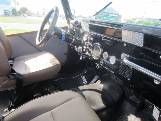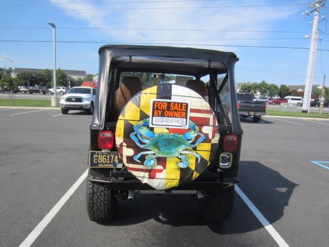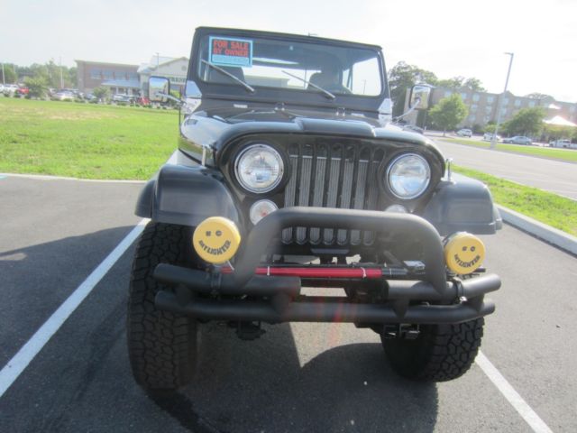 Newly rebuilt CJ7. New paint, new Throttle Down Kustom frame installed with Eastwood Inner frame coating, new Painless wiring kit, original 304 V8 engine with dual exhausts, Quadatrac removed and replaced with Dana 30 front axle w/lockouts and 3.73 gears. Dana 44 rear axle w/3.73 gears, new drive shafts with Dana 300 transfer case along w/new output shaft. Converted to power steering. MSD electronic ignition. KC Daylighters. Lift kit. New Warn rear bumper w/tire carrier. New Falkon tires, New radiator, hoses, hubs and seals and radio.