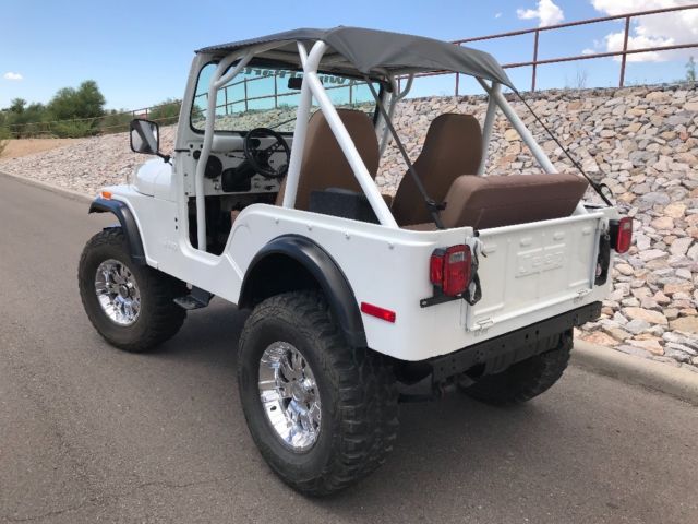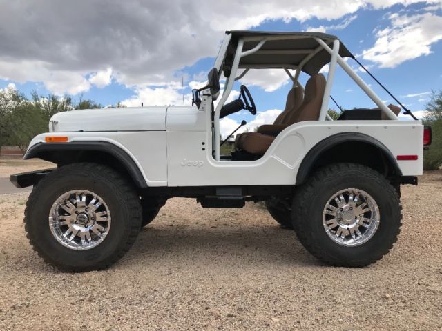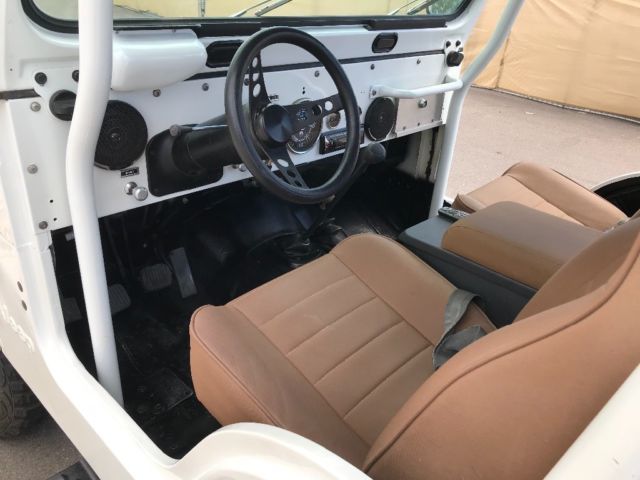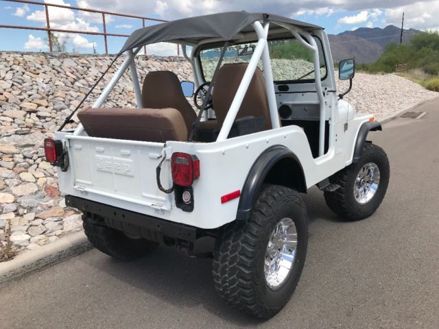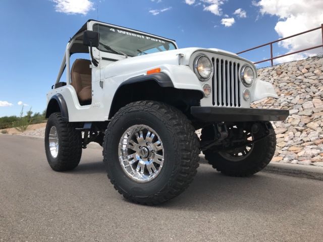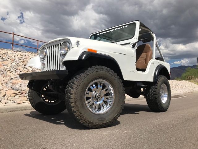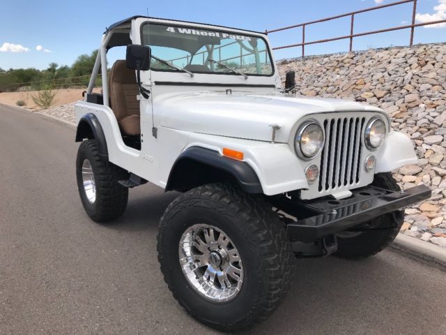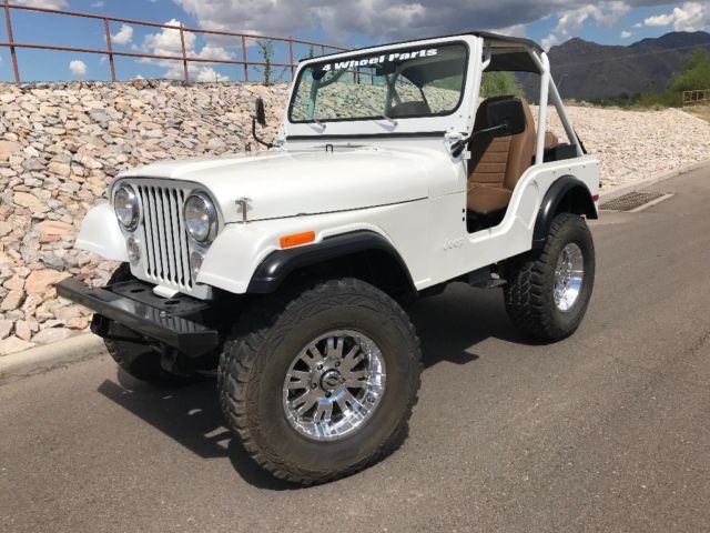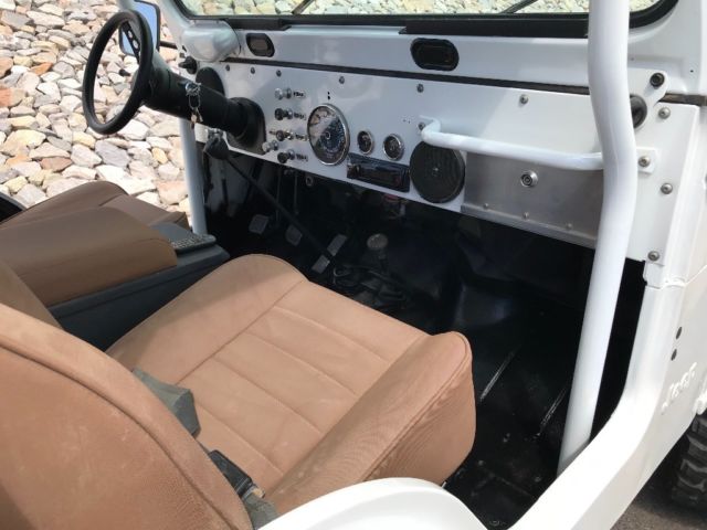 Talk about a real head turner! 1 year old partial restoration including new paint, roll cage, interior lining, seats, wheels and tires, leaf spring bushings, new bikini top, sweet Kenwood stereo system with remote! These pictures do not do the pearl in the paint justice, absolutely beautiful in the sunlight! Paint color is premium pearl white, it is a Toyota color code 077. Drives great, brakes are steady, clutch and steering perfect! Surprisingly steady at speed, very nice little CJ! Engine, transmission all stock, has the 4.2L option, three speed manual transmission, 4WD works as it should! Warn locking hubs, Arizona Jeep with a nice solid tub. Has locking glove box, locking center console (upgraded all steel) and another all steel lockbox under the hood. This Jeep needs nothing to continue enjoying! We use it on the weekends, could use as a daily driver! Please ask questions, ask for pictures, we are selling as-is. $1000.00 deposit due within 48 hours of close of auction. Remainder due at time of pickup. You arrange shipping, but I’ll work hard to make it easy for your shipper. You will not be disappointed in this CJ5!