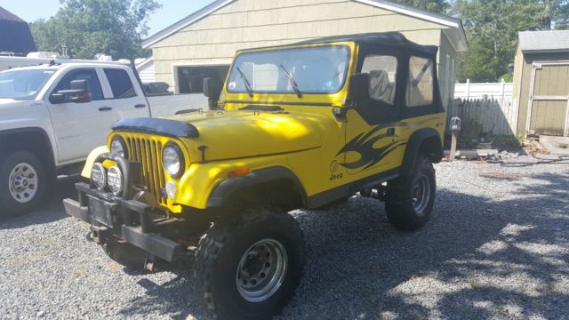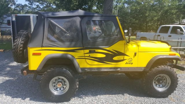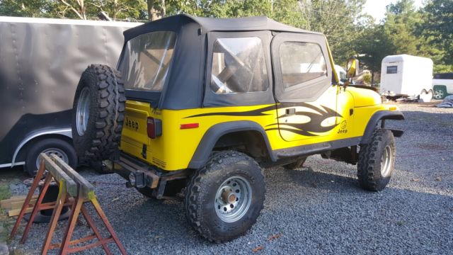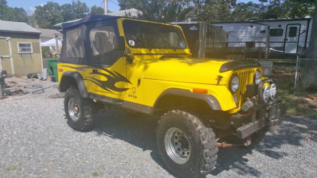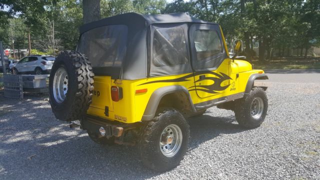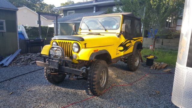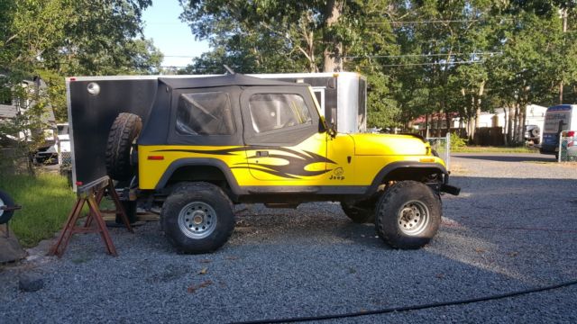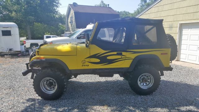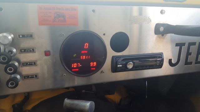 YJ Tub w/ CJ Tailgate Allows you to use the YJ accesoriesRough Country Lift 3 1/2" w/ extended shackles for about 5" totalNew FendersSolid frameRamsey 850 winchEdelbrock 650Best top seatsRebuilt tilt column w/ aftermarket steering shaftElectronic SpeedoPainless wiring HarnessCustom DashGas Hood StrutsNew RadiatorK&N Trans CoolerNew windshield frame and glassCustom Heavy Bumpers w/ Swing away tire rackOverhead sound bar, stereo needs replacingHeavy Rocker GuardsStainless Steel Brake LInesBimini topB&M Shifter33" SwampersMore.I tried to think of everything but I may have missed something. I have a ton of pics from the build if you want to see anything. This is a no reserve auction. No buy it now option, listing will run 7 days. Vehicle sold as is. Any questions feel free to ask. $500 deposit required. Balance due when picked upSee it run and drive at https://www.youtube.com/watch?v=Q-Us-tOdZnY