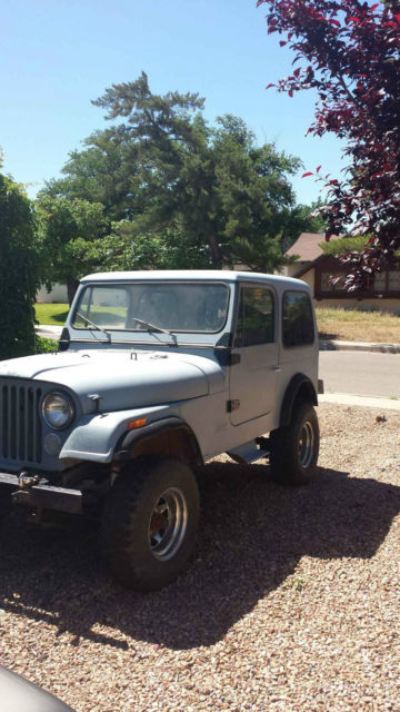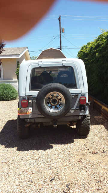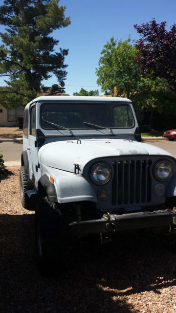 | 1986 CJ7 Jeep 124K miles, 5 speed manual trans, 6 cyl 258 cc, rebuilt 2 yrs ago, new seats, new soft top (with one repair)and soft doors, hard top and hard doors available for extra, new rims, used winch on front, all lights are updated to LED. Paint job is not perfect. Has scratch on front left fender and chips out of the front grill. |