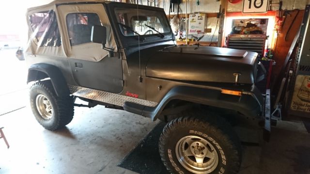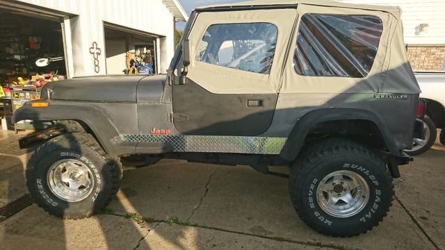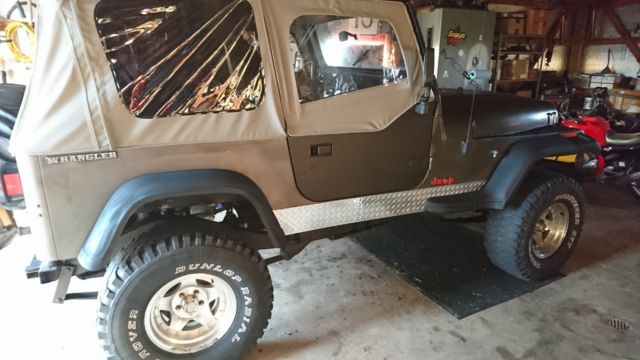| 88 Wrangler new top, all new front steering parts and alignment, has 350 chevy engine with 700Rwith over drive automatic trans. only rust was a small hole on rear pass quarter, repaired it and put diamond plate on and its under it. Frame has no rust. has 3 or 4 inch lift. headers and dual exhaust. runs and drives good. has stereo just need speakers. probably forgetting thing, feel free to contact me with questions, |