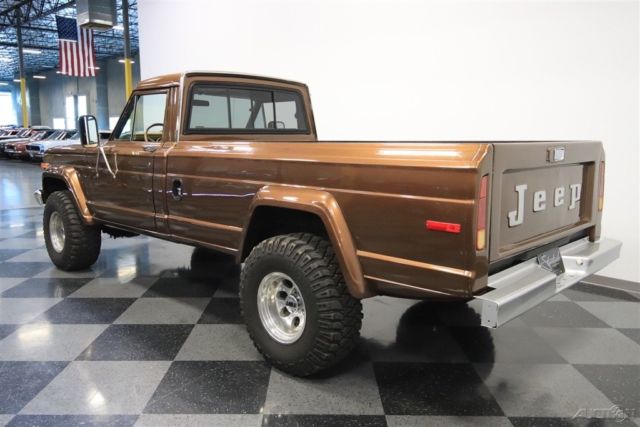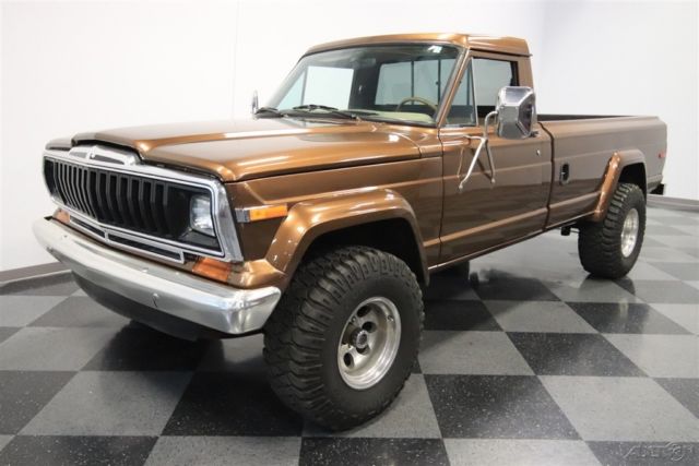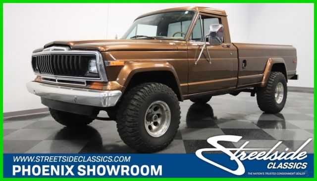 When looking for a distinctive vintage truck, it's hard to beat this 1988 Jeep J10. Aside from rarity, you get a tough 4x4 pickup that's ready for work duty. And when you see all the features â€" from the rebuilt transmission to the A/C interior â€" you realize this checks all your boxes, including an affordable price. This is the end of a prestigious line. After all, the Gladiator/J-Series had spent over a quarter-century being the Jeep of trucks. But because Chrysler had now taken the reigns at Jeep, the full-sized pickup was dwindled down to not compete with the Ram. So there were only about 1,000 produced during 1988 â€" it's final year. And you'll love this truck for more than just rarity. There was a more recent investment in Root Beer paint, and this metallic brown has a nice shine when it's outdoors. And in fact, this classic is still meant to lead a useful truck life. The tall 4x4 stance, large trailering mirrors, rear step bumper w/tow available, and liner paint in the bed all mean this one is ready for everything from a hardware store run to a camping trip amongst the stars. These trucks shared their interiors with the Grand Wagoneers, and so it's a quite comfortable place to spend some time. That means a stylish dash with wood paneling, and it's so wide that the glovebox is in the middle. You get comfortable features like a plush bench, tilt steering column, cruise control, and an upgraded AM/FM/CD stereo with Bluetooth connection. The classic style means you can open the side vent windows and slide the rear glass to get the old-school truck breezes we all love. And thanks to ice-cold factory air conditioning, you can do this all year long. The Jeep/AMC 360 cubic-inch V8 has been a long-standing powerhouse utilized by some legendary vehicles. The consignor states this is the original motor to the vehicles, and that it was rebuilt around 20,000 miles ago. It looks like this is true just by the quality of the presentation, and the way this fuel-injected motor fires up. Plus, this V8 is mated to a Torqueflite A727 three-speed automatic transmission that was rebuilt in April 2018. That's the kind of stout setup you want for off-road work. It only gets better with the proper two-speed 4x4 transfer case, four-inch lifted suspension, tough Dana 30 axles at both ends, and Mickey Thompson Baja MTZ tires. But even if you just stay on the pavement, the power steering and front disc brakes make this truck a fine anytime choice. Rare, powerful, and filled with the right features, this is the classic Jeep offered for quite a nice price. So if you love a distinctive pickup, don't let this one slip away. Call today!!!