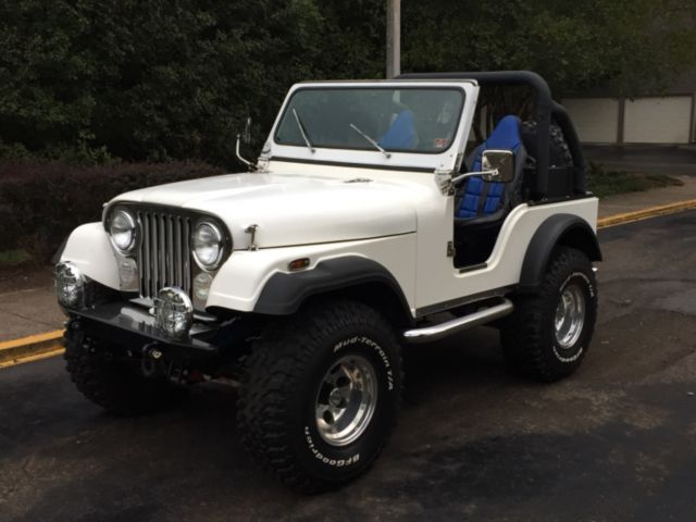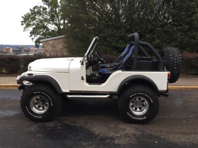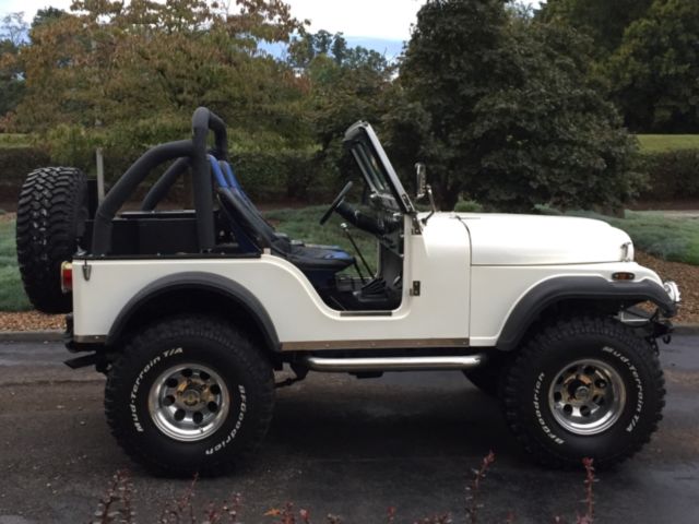 1982 CJ 5 Jeep with: Manual- 304 V8 Custom Chrome Edelbrock Engine, 6 inch Skyjacker Lift, Chrome Nerf Bars side steps, Dual Chrome Exhaust, Warn Bumpers with D-Rings, 5x BFGoodrich Mud Terrain T/A Tires (35 x 12.50 R 15 LT), KC HiLites, Tuffy Security Products in the Console and over the Rear Speakers, RJS Racing Equipment Seats & Harnesses, JVC- CD player with Clarion Sound System & AMP Kit. 4621 miles on the engine. Comes with a full Best Top Soft Top & Soft 2 piece doors, and a Bikini Top.Only problems: console needs a new lock, minor wiring issue with CD player.Asking $18,500 OBO.Only serious offers. No trades. Sold as is.I love this Jeep, and hate to let it go.. RUNS GREAT!Message me with questions.