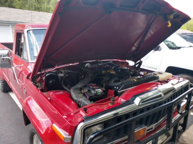 1987 Jeep J20 Pickup with 28,600 original miles. This truck has been garage kept and non smoker owned for it's entire life. The truck is all original including paint other than the radiator which was replaced. The original radiator was redone and comes with the truck. There is some minor paint bubbling on the drivers side by the rear wheel flare as show in the pictures. The front rail of the bed has a small dent and the interior of the bed shows wear from use. Overall the truck is in very good condition. |