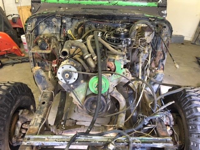 1990 Jeep YJ with 4.2 L auto NP 231Chevy TBI and Chevy HEI conversionDana 30 4:10 posi lock CadDana 35 4:104.5 Rough Country Lift33 inch tiresHard TopHard DoorsAftermarket bumpersSport Cage this jeep has been prepped for Painting and body work completion. Rust was all cut out.Good base Jeep to build out how you want.We can ship this jeep to anywhere within the US. Please contact us for shipping quotes or with any questions or if you would like to see the Jeep in person prior to purchase. |
