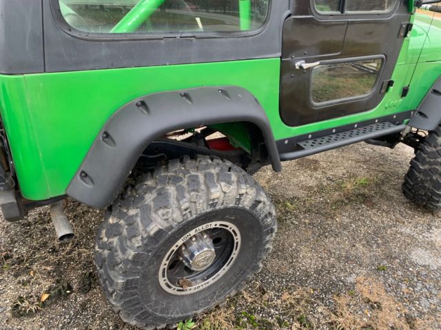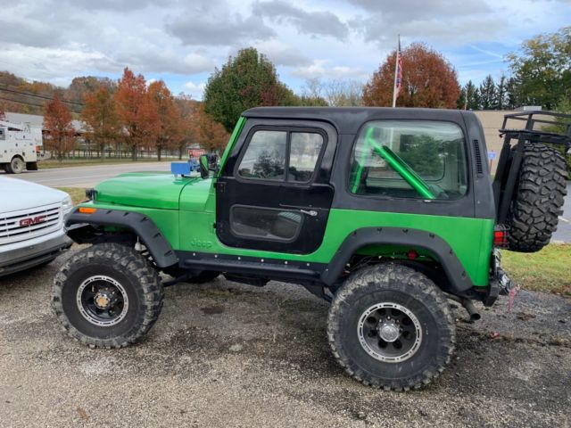 THIS IS A 1981 CJ WITH A YJ FRAME THAT HAS HAD A PRO COMP COIL OVER CONVERSION DONE.3 INCH BODY LIFT304 V8ELECTRONIC GAUGES THE GAS GUAGE SHOWS 3/4 FULL WHEN FULLTHE SPEEDOMETER DOESNT REGISTER SOMETIMESHAS ALL NEW DISK BRAKE CONVERSION ALL THE WAY AROUNDEVERY JOINT UNDER THE JEEP HAS BEEN REPLACEDT176 TRANNY300 TRANSFER CASEFORD FRONT AND REAR END 9 INCH ( I DONT KNOW THE GEARS)PIT BULL TIRES 100 % TREAD BRAND NEW OVER 2500.00 RIMS AND TIRESWINCH FRONT AND REARCUSTOM SEATSNOT A RUST SPOT ANYWHERE ON THE JEEPTHERE ARE A FEW PAINT INPERFECTIONS WHERE HOOD HAS SHUT AND SCRATCHED NOT A SHOW JEEP BUT ONE HEAD TURNERSOMEONE HAS SPENT THOUSANDS ON THIS JEEPTHIS IS A BEAST OF A JEEPHUTCH 606 625 4105 QUESTIONSPLEASE MAKE SURE WHEN BIDDING YOU HAVE BEEN APPROVED FOR FINANCING OR YOU HAVE THE CASH OR PLEASE DONT BID WOULD CONSIDER TRADING FOR A MINI EXCAVATOR OR 70,S MODEL CREW CAB 4X4 |
