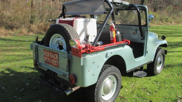 | Up for sale is a 1962 Jeep CJ5 formerly a brush firetruck with the Forest service department of Agriculture, It has 31,200 miles, 4 cyl., 3 speed, heater, lockout hubs, new tires, new wiring, with 100 AMP thermal circuit breaker, new carburetorand plugs and wires, will do 65 MPH on the high way, NO rust, I took a picture of the worst spot on the hood, runs and drives very good. For more informationcall Ron @ 717-246-0910 or 717-855-5101. |
