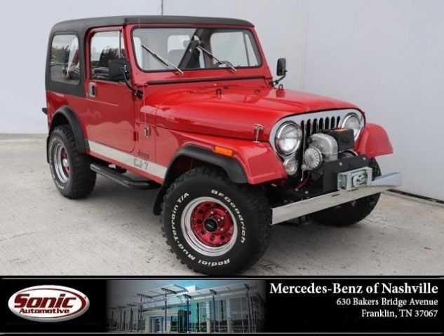 This 1986 Jeep CJ 4WD CJ7 features DEEP CHERRY RED CRYSTAL PEARL EXTERIOR COLOR, AND BLACK INTERIOR COLOR.MERCEDES-BENZ of NASHVILLEMercedes-Benz of Nashville is proud to be the largest Mercedes-Benz dealership in the Nashville area! Mercedes-Benz of Nashville is located at 630 Bakers Bridge Ave. Nashville, TN 37067. Our dealership sets the standard high and has become synonymous with the highest ethical business practices resulting in unparalleled levels of customer satisfaction. It is this commitment to excellence that makes our customer... service not only our promise to you; it is our mission!