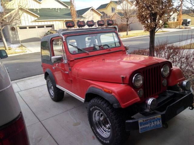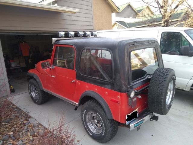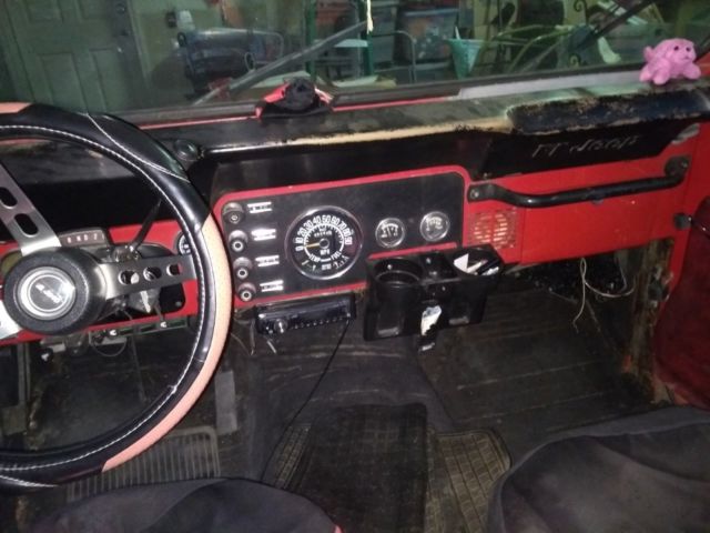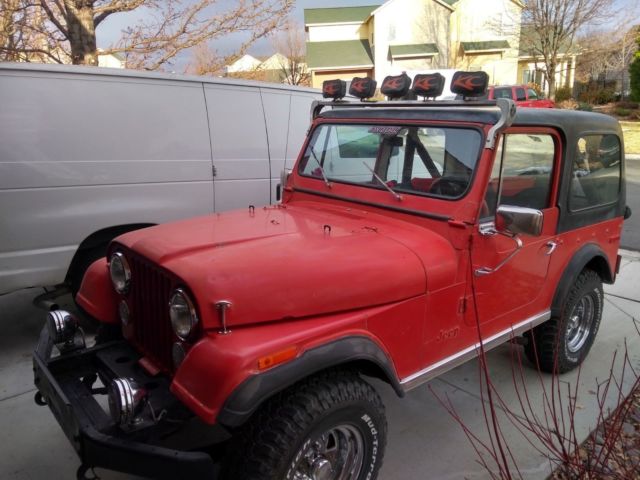 I am selling my 1976 CJ-7. I am the second owner. I purchased the jeep about 20 years ago from the original owner. They had just rebuilt the original 304 amc, V-8 motor. I used it as my primary vehicle for about 4 years. Since then it has been a back-up vehicle (probably 40k miles since rebuild). The th-400 (Chevy, heavy duty) 3 speed automatic transmission was rebuilt about 6 years ago. I have only put about 1000 miles on it since then, but there is a leak (probably seal, as it sits in my garage for periods of time). The carburetor was also rebuilt around that time. Note:!!!!! I have listed every imperfection I can think of. I'm not a professional seller, and I'm sure that you can find other listings on the "inter-web" that do not seem to have as many issues as my Jeep. But, I am not trying to sell a "bill of goods", just trying to let you know everything I can, so that when you get the Jeep, you will be happy and will have been fully informed. Jeep has 7 KC lights, a lift, and larger tires with 90% life left. A custom moon roof cut into hardtop. Hardtop has some wear, but fully functional. Seats were replaced by original owners (the family I bought it from) with mechanicalCorvetteSeats. Need upholstery. I have replaced the front breaks and drums, but there is an issue with the front end causing wear (most likely Stability Arm, per my mechanic). Also, replaced the oil pan gasket and dipstick tube (but also a small leak). I replaced all electrical components (starter, coil, alternator, battery). When you take off from stopped, transfer case clunks (clunk, clunk, clunk) until you you reach about 20 mph, then smooth drive. This is a good Jeep, but needs a little TLC. I would recommend the buyer either know their way around a jeep, or have a few bucks to put into it. In either case, you will have a rare, classic CJ-7 with the V-8 motor, and automatic transmission. |