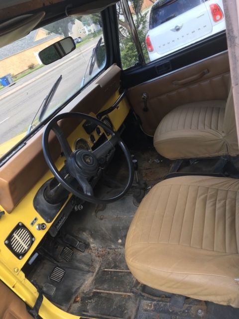 Best $5000 CJ out there! Just moved from Dallas to Phoenix and need funds for a down payment on a house. Solid reliable CJ that hasn't been butchered. Make it what you want or enjoy it as is. Starts and runs like a champ. Comes with a brand new TNT stubby winch bumper that I just picked up from the powder coater. I have a stereo and compete CB radio package that goes with it. 4.2 motor rebuilt 1700 miles ago to include: Bored .30 over. Weber 32/36 carb HEI Distributor Twin Sticked Dana 300 New brakes/master New GPS speed sensor gauges from Speedhut - Fuel gauge is not sending. BFG All-Terrains like new KC Headlights Repainted sunshine yellow from original tan. Factory A/C that blows warm Windshield frame is rusty Minor bubbling in the rear panel Tub/floors have been repaired and rust converter done Light surface rust here and there underneath The gauges were changed with the rebuild. They read 1700 miles. The PO thought the original miles were around 85,000. Seems about right for the condition of this 32 year old CJ. Clear blue Texas title in hand. |