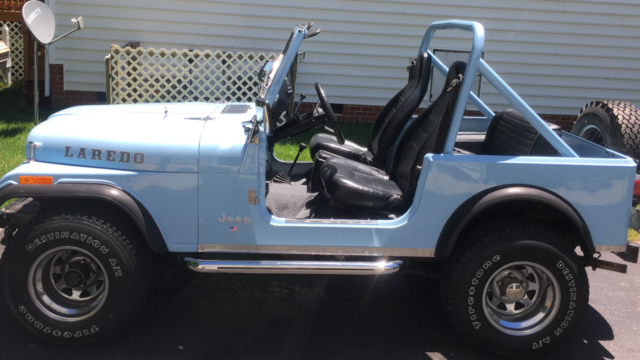 | THIS JEEP CJ7 HAS BEEN A SUNDAY DRIVER FOR THE LAST 20 YEARS OR SO AND IT SHOWS. THIS JEEP IS BY NO MEANS PERFECT AND IS NOT REPRESENTED AS A SHOW VEHICLE BUT IT IS A VERY CLEAN EXAMPLE OF THE 1986 JEEP CJ7 UNMOLESTED (EXCEPT PAINT COLOR) AND EVERYTHING WORKS PROPERLY AS IT SHOULD. THE JEEP DOES NOT HAVE A SOFT TOP AS IT HAS BEEN GARAGE STORED AND ONLY USED ON SUNNY DAYS. IT HAS THE BIMINI TOP AND A ROUGH COUNTRY VINYL COVER. IT HAS BEEN VERY WELL MAINTAINED AND SHOWS MINIMAL WEAR AND TEAR FOR A 32 YEAR OLD VEHICLE. 4 WHEEL DRIVE WORKS PERFECTLY AS DO ALL GAUGES AND DRIVE TRAIN.IT IS A REAL LOOKER AND IS READY TO GO AND ENJOY A LONG LIFE WITH NEW OWNER. TITLE STATES "ACTUAL" MILEAGE AND PREVIOUS OWNER WAS EMPHATIC ABOUT IT AS WELL. IT HAS A CLEAR VIRGINIA TITLE. |