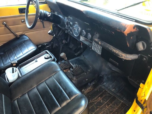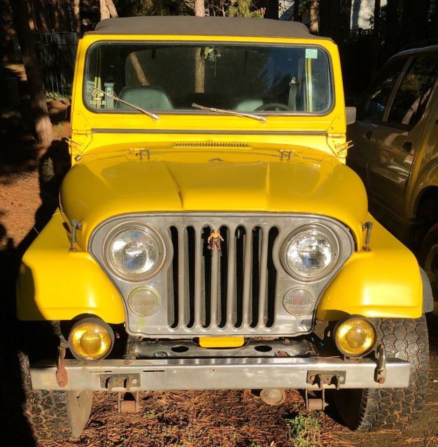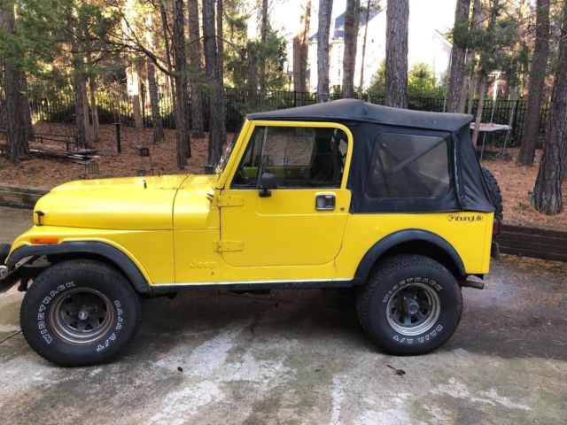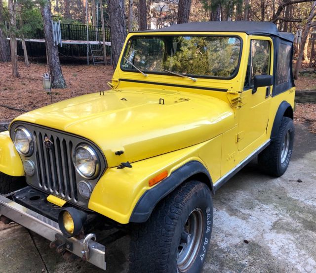 Great little 1983 stock CJ7, runs good, has electric fuel pump, nor frills, just custom under the hood. Rebuilt engine in 2005, probably has less than 25k on it. College jeep for son. Has a newer gas tank. Front seats in great shape, rear seat ok. No dents, or dings in body, door or hood.. All metal- no bondo. Had it stripped down in 2005 to metal and primed and painted. has some bubble minor body rust here and there. Soft top. I have the hard top, and two side windows for that top they are not installed. I have two half doors, they are black. Jeep doors close well. Fiber fender add ons are cracking. Title is Clear, in my name. This is my second CJ love them just need the funds more than a weekend jeep.