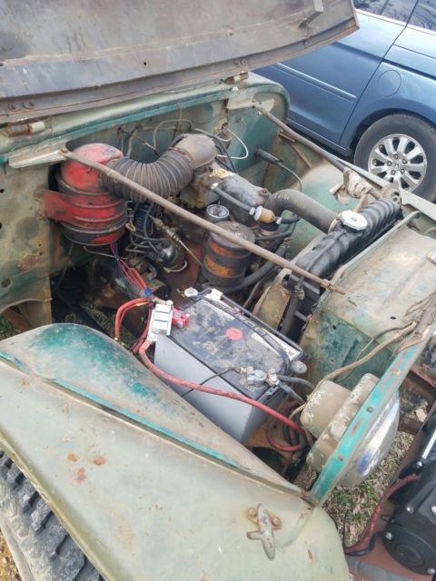 1956 cj5 jee, Willys F4-134 Hurricane t-90 still has original dane 25 front and dana 44 rear with Lock Right Locker - PowerTrax in both front and rear axle, 9500 lb wench on front. i've added these things since i got it almost 3yrs ago to ride around on my property which is being sold and i no longer will need the jeep. It is not a rusty jeep from this area it started out in az. so other than wear paint wore off and surface rust showed up this is rust free orig. 56 jeep with seats from a 1st year mustang. the hood was off the jeep when someone ran over passenger side of it.sold as is were is / can help with arrangement for pick up (at your expense) with your provided transport co. Jeep also being sold locally and auction may be ended prior to end date. Please ask questions i will be checking frequently. It is a good old jeep and i have enjoyed it. |
