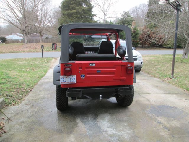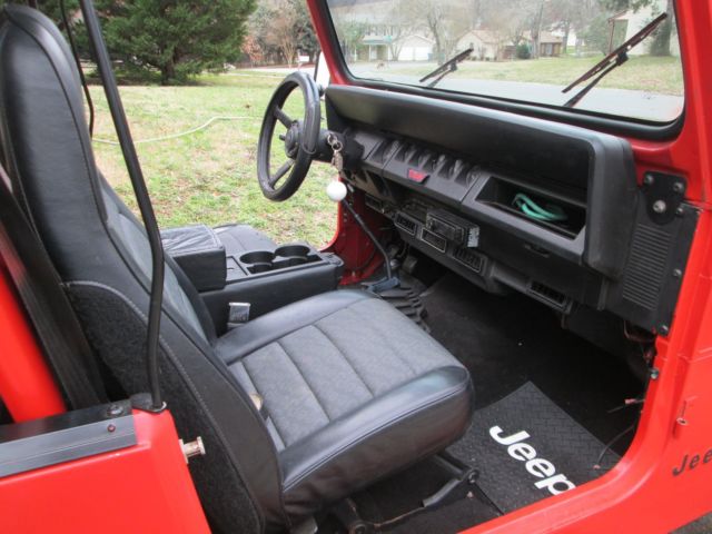 For sale is my 1987 Jeep Wrangler YJ straight six 4.2 with the five speed manual transmission. Original engine and transmission. Mileage is 122k. NO RUST on this jeep. I have owned this car 31 years (since September 1986 when I bought it with 10k miles on it). Runs and drives great. Has 32” Jeep wheels taken off of a 2016 Rubicon. I have the original wheels if you want them and can transport them. This Jeep is mildly lifted. It has a 1” body lift and 1" leaf spring and 1" shackle. It comes with full metal doors, half soft doors, soft top, and hard top (if you can transport it). The soft top is older but functions fine Has AC but does not blow cold. I installed a new AC compressor a year ago but did not have the system charged. Should be an easy fix if you want AC I painted this car in my driveway about 7 years ago. It probably deserves a new paint job. There are some scratches on the hood that I have painted over. See the picture for an example of one of them. there are about 4 on the hood. I was going to paint the center portion of the hood black to cover some of these. The rear gears are currently the original 3.07 gears. I have 4.1 gears which I will include with the car. Please ask questions before bidding. Serious bidders only. If you have poor feedback please do not bid- or I will cancel your bid and block you from further bidding. Car is in Charlotte, North Carolina. There is a rip in the drivers seat. |