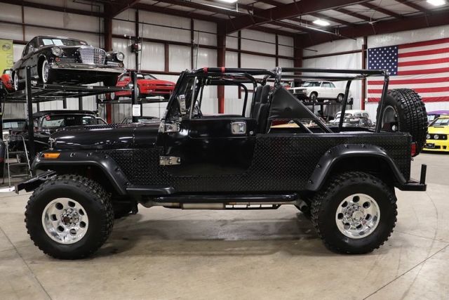 he Jeep brand has laid the ground work for many enthusiasts to sculpt their Jeep with their own flare and style. Modifications that have been done by many talented people are quite impressive over the recent years. This 1983 CJ-7 is quite impressive and was built with passion and was created to perform! This CJ is powered by a healthy 454 v8. The block is a 1999 fuel injected block. It has headers, Mallory distributor, a Crane roller cam, Edelbrock...intake, 780 Holley carburetor with spring loaded needles and seats that is set up for off road use. The Turbo 350 automatic transmission was beefed up so it could handle the power of the 454. The axles consist of a Ford 1 ton axle that has been narrowed with Moser axle shafts, Detroit locker and 4:10 gears. The front axle is a Dana 44 out of a Scout. The transfer case is a Dana 300 with a big shaft in it to hold up to the added power. As you can see in the photos, this jeep is a bit longer than your average CJ-7. It was stretched 21 inches and it was done very well. Highlights include electric fuel pump with a prime button on the dash if it sits around too long without use, new ring and pinion in the back, custom 23 gallon aluminum gas tank, bronze glass in the top, custom drive shafts, rear tool box, full roll cage, rear mounted spare tire, power brakes, power steering, aluminum radiator, dual exhaust with Magnaflow mufflers, 35x14.5R17 BF Goodrich tires, Autometer gauges, center console, Hurst Promatic 2 shifter, Clarion AM/FM/CD player with 2 6x9 speakers, and Skyjacker shocks. When this thing was built, the owner freshened up the engine, transmission, rear end, transfer case. This Jeep was very well built and is sure please.