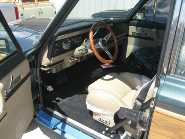 | Spectacular. low miles. completely renovated. 1987 Jeep Grand Wagoneer (SJ) for sale. Per Wiki. “The Jeep Wagoneer was the first luxury 4x4. sold and produced through numerous marques from 1963 to 1991. A "sport utility vehicle" (SUV) for decades before the term was even coined. the 4WDWagoneer saw only minor mechanical changes during its 28-year plus production run. the third longest in U. S. automotive history. Introduced as a successor to the Willy’s Jeep Station Wagon that had been built since the end of World War II. the Wagoneer pioneered the sport utility vehicle concept. ” This Woody started life as an original 1987 Jeep Grand Wagoneer. Since purchased by its current owner. it has undergone a 7 year project build. including contributions from a 1991 donor vehicle to create the stunning example you see in the photos. The owner’s build sheet included replacement of the original frame and installation of a complete Matkins Extreme off-road frame running the full length of this Wagoneer. A custom aluminum fuel tank. with steel skid plate for added protection has been installed; restored wheels and new tires are now on the vehicle as well. All exterior brightwork has been reconditioned or replaced. Twin Marchal bumper mount headlights are installed up front for added illumination. New full-length vinyl “wood-trim” from BJ’s Off-Road (thicker and more durable than the original) has been installed front to back. Completely finished in the highly desirable Hunter Green exterior paint. The 4 wheel drive system remains in place along with the transmission and the original AMC 360. 5. 9L V8 motor. The original carbureted fuel delivery system has been replaced with an Edelbrock EFI Pro-Flo2 fuel injection system for easy and consistent starts. A new Grant wood steering wheel has been installed and the dash panel is completely restored and modified to incorporate a full complement of all-new Custom Instruments gauges. An in-dash Kenwood DNX6190HD Garmin Navigation System has been installed as well. A completely new tan leather interior was installed with custom leather Sparco Milano Prestige front bucket seats and black Schroth 4-point harnesses. An oversize leather-covered utility cargo box and console is located between the front seats. A bolt-in harness bar is provided immediately behind the front seats for attachment of the front harnesses. The rear bench seat has been reupholstered in matching tan leather and also has new black 4-point Schroth harnesses and bolt-in harness bar in the rear cargo area. New black carpet has been installed throughout. as have metal floor runners in the cargo area Stored indoors since restoration completed in 2013. Original miles are unknown. but has been driven less than 300 miles since date of Texas titling in August 2013. Displays Texas Classic Truck plates and based on current age of vehicle (over 25 years old) is exempt from emissions testing in Texas. This vehicle is being sold As Is-Where Is and no warranties. nbsp;express or implied. are made. This Jeep will enthusiastically be made available to any qualified buyer to conduct a pre-purchase inspection (at buyer’s expense). In the event you wish to conduct a personal inspection ahead of purchase. please schedule this before submitting any offer to purchase. This vehicle is being marketed independently through other channels and is subject to prior sale. If you have any questions and/or wish to discuss purchase. email ianpowell427@gmail. com or call directly @ 713-805-1976 for a prompt reply. |