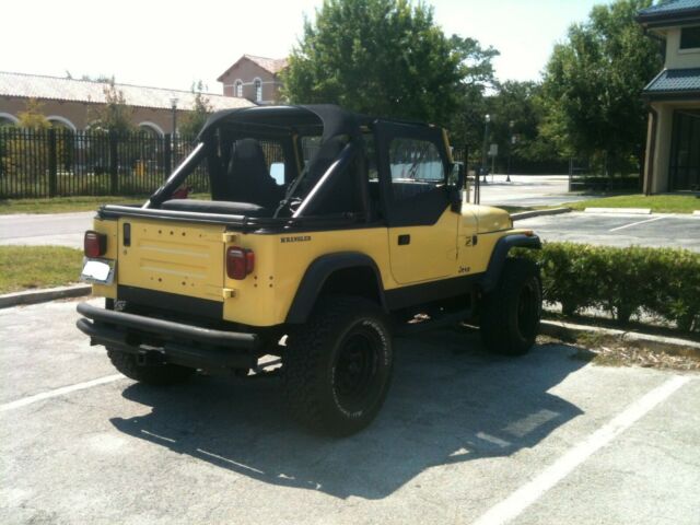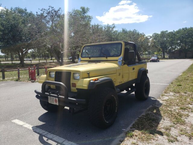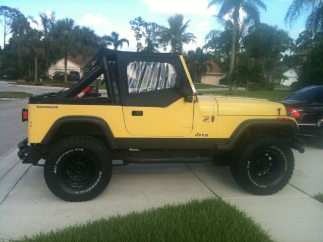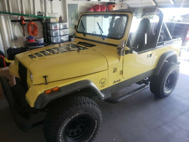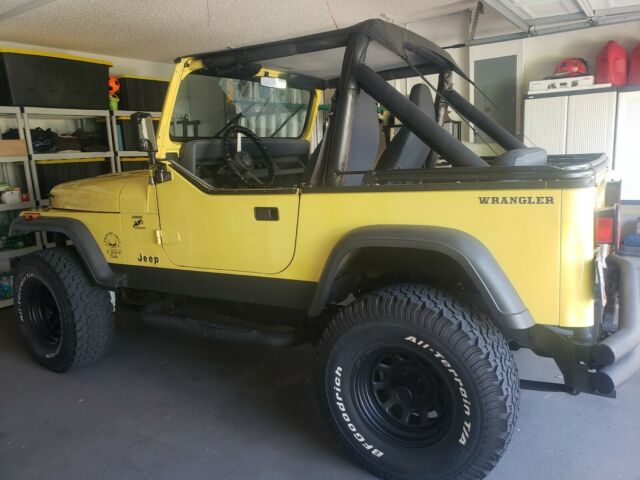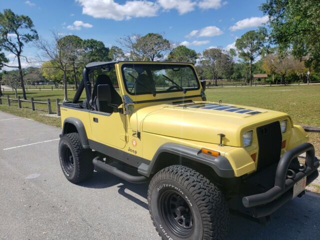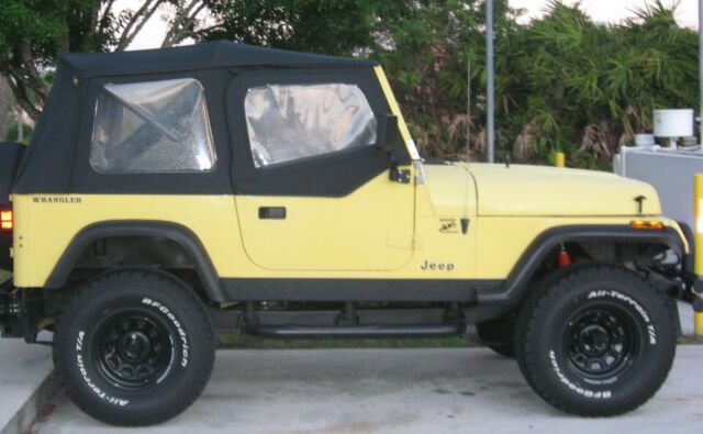 Beautiful and well maintained, original Malibu yellow, 1989 Jeep Wrangler YJ (Islander) 4X4 with a 4 in. lift kit. Strong running straight-6 cylinder 258 Cu. In. (100,412 miles) with a manual overdrive 5 speed transmission. Garage kept for the past 11 years and with many parts either replaced or rebuilt which include; new alternator, radiator, water/oil/fuel pumps, master brake cylinder, timing chain, front/rear main engine bearings and seals, rebuilt clutch, transmission, transfer case and rear-end (gears). New full canvas "Bestop" with full, clear windows and half doors. Bestop seat cover and weather coated floor pans. Also, newer bikini top, Black Mountain nerf bars, front/rear bumpers, and fender flares. A set of fresh B.F. Goodrich "All Terrain T/A 33 x12.5, and a Sony CD/AM/FM radio. No A/C. Clean and great looking Jeep YJ. Hard-pressed to find a nicer, or better maintained classic Jeep Wrangler. |