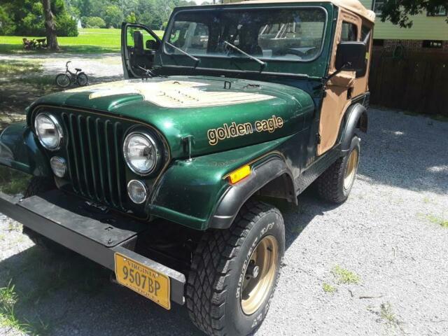 - For bid is a 1982 Jeep CJ 5 with a 2.5 liter "Iron duke" GM engine. 146,000 and climbing as I still drive it. New Paint, New front seats, New Weber Carb., new wires plugs,rotor button and cap. New 2.5 inch lift springs, new shocks, new radiator,new battery,new starter,new soft top(best top) with removable doors and windows. top half of doors are removable to make half doors,new valve stem seals,new oil pressure and volt gauges.New dash indicator lights.New heater control cables.New gas tank and sending unit, New muffler and tail pipe.New tie rods and front end parts,with front end alignment.New heater core.New brakes. This Jeep has manual locking hubs,a 4 speed manual transmission, with a cast iron transfer case. Very good condition.The engine has very minimal oil blow by,I do not have to add oil between changes . It does not foul the spark plugs and the compression is good. It just has a little oil on top of the valve cover.I am not afraid to drive this jeep on long trips.Also there is a small dent in the hood shown it the last picture. This jeep is a renegade with golden eagle stickers.$200 non-refundable deposit due within 24 hours of auction close. Full payment due with in 7 days. Jeep will only be released after all payments clear. Thanks.