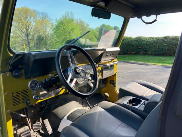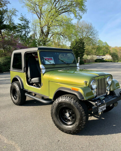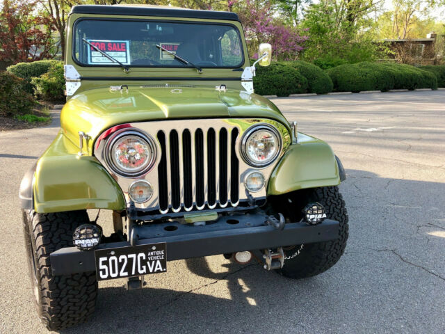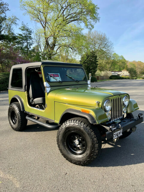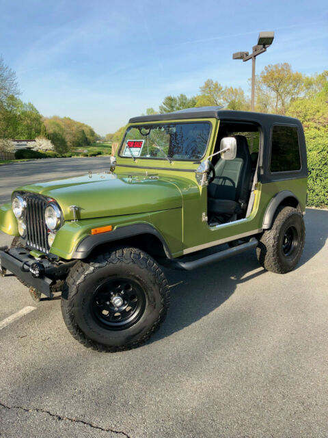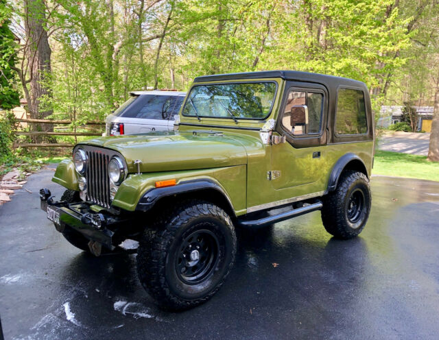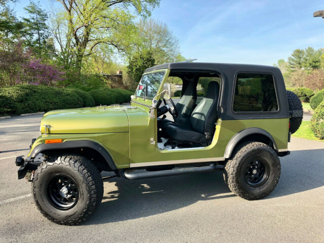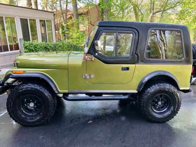 MINT CONDITION 1985 JEEP CJ7 Vintage and rare 1985 AMC Jeep 4x4 CJ7 straight six cylinder engine 5-speed manual transmission. Only 2 owners used for enjoyment keeping this baby under 96K original miles! Fiberglass body so no rust! Custom two tone paint job army green with yellow hues in the sunlight. I have never off-roaded with this vehicle. Immediately starts and runs, fun to play. Mainly used for a weekend toy. Only selling because wife wants more driveway space... Recent upgrades in past 2-3 years include: