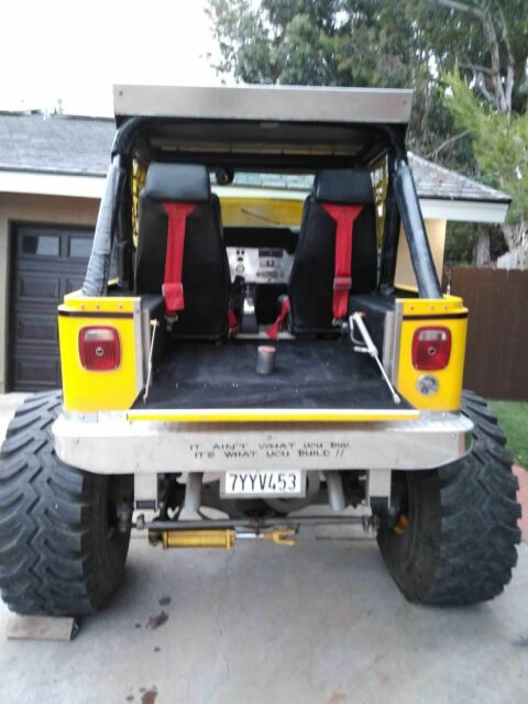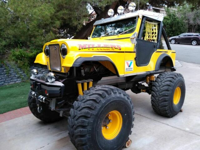 This 72 cj5 vehicle was built by Miller's Classics in NY. He recently passed away so his vehicles are now very highly sought after because high standards and workmanship . My uncle commissioned this vehicle to be built to his specifications at a cost of $89,000 in the 90's. He used it rarely at summer fairs. The engine is a built 390 from a correct era AMC AMX with a nice cam and other upgrads. It has 2 1/2 ton Rockwell axels w/ differential disc breaks. It has Carter duel quads on a ofenhauser manifold. The winch is a Ramsey 8000 lbs ( needs hand controller). The rear wheels turn hydraulicly and when you turn the front wheels the opposite way, since it's always in 4 wheel drive: the truck will spin crazy in a circle. It was insane, i do remember that!!! (Rear hose connection to the ram needs a O ring or thread sealent). Hood opens hydraulicly as does the rear tailgate. The 44in dirt dawg tires are like new, so yes I use a little step ladder, entrance is 50 in off the ground. Extensive use of stainless everywhere. Everything is hand made and custom. The frame is 10"x 1.5" channel that is powder coated I think, or baked acrylic. The Jeep has about 30 hrs on the build. When my uncle passed he left it to my cousin and when he passed away recently he left it to me. The truck needs 4 zipper axel boots which are 75 each on ebay. My whole family have always been car nuts. My uncle was a 4x4 nut my dad built mustangs and I build VW buses. This vehicle would cost 125k to build now. It's a pure steal and is registered and titled in CA in my name for the road. Would I drive it on the road? Maybe with street tires and mud flaps on it.... Thanks again. Final payment if cashiers chk needs proof of clearing b4 vehicle is released. 30 days free storage. Will assist shipping drop to close location In flat area zip code 91902.