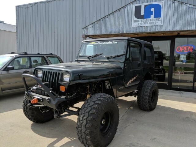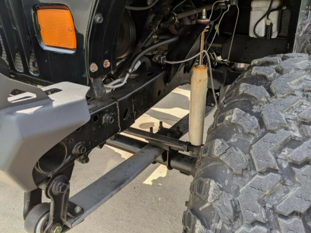 Sand blasted frame and completely rebuilt from frame upBody Painted GM 47U DBU5838Full steel doors and ½ steel factory doors includedBRAND new Bestop soft top included in the BOX with NEW soft uppers over $1250.00Factory Hard top included1996 454 Fuel Injected Big block with Novak motor mounts1996 4L80E Overdrive transmission with trans coolerALL new wiring from Painless WiringNovak Aluminum radiatorDana 60 SOLID axle industries Full float rear with 4.10 gears and trac lock carrier, SOLID diff cover, YUKON hardcore drive flange set, weld on caliper brackets-disc brakesDana 44 front with 4.10 gears and high steer knuckles and arms new ball joints and u joints37x14x15 Bias ply Iroks on aluminum wheelsBlue torch fab front steel fendersWarn premium lock out hubsSpray in bedliner1 teraflex body liftTeraflex single leaf springsBranik Motorsports 35 spline axle shafts for rear axleDana 300 transfer case with Teraflex HD output shaft kitAdvance Adapters trans/ t-case adapter and twin stickWARN VR8000s with synthetic line and Crawl Tek aluminum fairleadFactor 55 thimbleCrawl Tek Front and rear bumpersTube HeadersBDS stainless brake lines20 gallon plastic tank with Warrior gas tank skid PN 90710Proportioning valve for 4 wheel disc brakesCenter console with lock box-paddedTom Woods custom 1350 CV drive shaftsClassic tube stainless steel brake/fuel linesCrown Automotive oversized Master cylinder and booster for 4 wheel disc brakesRampage Dirt master Offroad suspension seatsBed rug flooring front and rearInterior door panels-charcoalNew Crown fuel pumpAlmost all new sensors Crank, wires, cap, rotor, neutral safety, knock sensor, oil pressure, plugs, air filter, oil and filter, gear lube, trans service, filter, temp sensor, hoses, thermostat, battery, cables, coolant, brake fluid, fuel filter, power steering fluid, TPMS, wiper blades, U-joints, brakes, bearings throughout, rotors, wheel studs, calipers, pitman arm, steering shaft & more