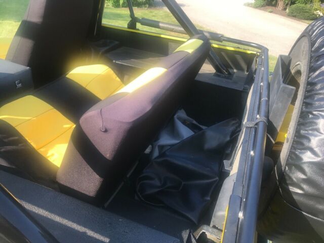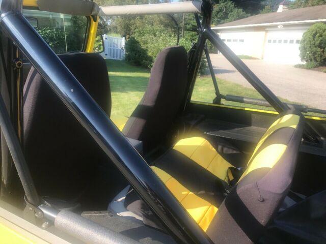 | Super clean Jeep. European Ford high metallic Yellow. 2" lift, Dick Cepek wheels, hard doors, soft doors, soft top, bikini top. Runs great. Was restored a number of years back and then sat garaged for a few years. Has a few oil leaks due to valve cover gaskets etc being dried out from sitting. All in all outstanding Jeep and ultra clean. |