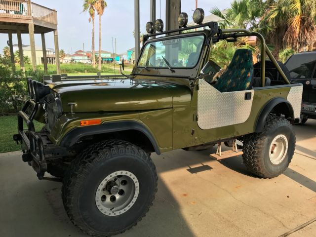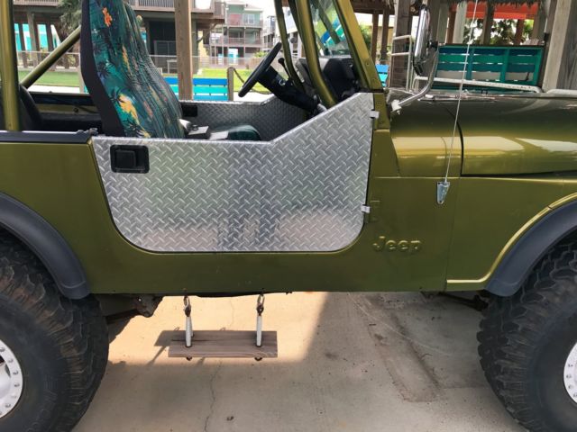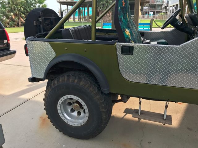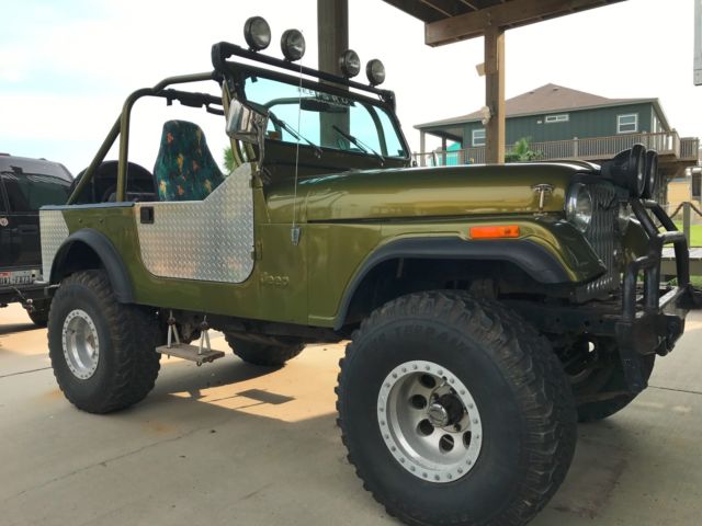 78 jeep CJ7 (before wrangler) V8 Small block Chevy 350ci, Brand new carbureto, 3 speed Chrysler 727 automatic transmission, fiberglass tub, hood/fenders, windshield frame. Mileage since motor swap is 15-18k miles original hard top Heater blower motor and fan replacement, replaced the non-reclining aftermarket seats with seats from a 94 YJ, pulled the "custom roll cage" out and put in a 94 YJ family cage with the spreader bars. I found some original steel doors and I have them but they have not been painted or mounted yet. I'll list off the mods I know have been done: V8 small block Chevy (converted to carbureted) Dual straight pipes. Chrysler Torqueflite A727 3 speed automatic transmission Fiberglass double walled tub, fiberglass hood and fenders combo, fiberglass windshield frame. Frame is in excellent shape and is boxed for extra strength Front axle is from a 70's international scout and is a Dana 30 Rear axle is a 78 dana 30 Power steering is a remanufactured from a scout and the pump is from a Silverado, this has been relocated above the frame (common mod for extra ground clearance up front) Twin stick dana 300 transfer case 32 inch tires Front spring shackle relocation Heater blower motor brand new along with fan. Front seats and brackets from a 94 YJ, I have the rear seat that matches these, not installed, original back seat installed currently YJ family roll bar with spreader bars, front seat belts from 94 YJ. (rear shoulder belts can now be installed, lap belts currently) I have lots of extra bolts and some MISC parts that can all come with. Including fabric half doors and steel full doors, I also have full OE soft doors for use with a soft top. One door handle on the full soft doors will need to be replaced but the windows are in great shape and very clear. It's an absolute riot to drive, runs great. the paint isnt perfect, there are a couple small runs and some orange peel here and there. No a/c, no ABS, no sway bars. The hard top will need to be lined up with the windshield when the doors are mounted, works fine as is with the soft half doors. Point is it runs great as is and doesn't need anything, with a little time and effort you could have something really nice, build a serious trail rig, make it really clean and take it to shows or just drive it. Totally up to the buyer, jeeps are just fun to make your own. The interior is very basic no carpet no radio Again the car is mechanically sound runs and drives great only a few things need to be fixed like One of the locks on the back latch broke. One of the side mirrors will need to be reinstalled it was installed backwards |