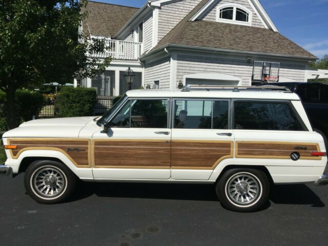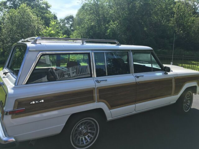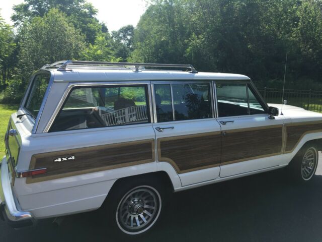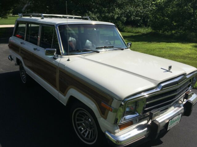 1989 Jeep Wagoneer Original wood. Fantastic driver quality. New tires, brakes, coolant lines, exhaust, battery, refinished wheels. No mechanical, or electrical issues at all. Roof racks could use a polish to bring back new shine. Slight fading of paint in a few small places on corners of hood near windshield. Wood trim showing slight signs of age, but overall in great condition. A/C blows cold, but not ICE cold. 4wd works. Oil changed every spring since I have owned it. Stored in heated garage durning winter months. Some slight rust is starting to appear behind wheels in rear, and in front of front wheel on pass side. (see photos for both) All in all a great driver, or an easy resto under 100K miles, and not many left in original condition with low mileage. Please contact me for more information, and/or photos. |