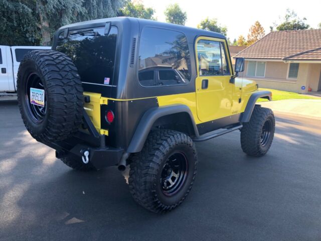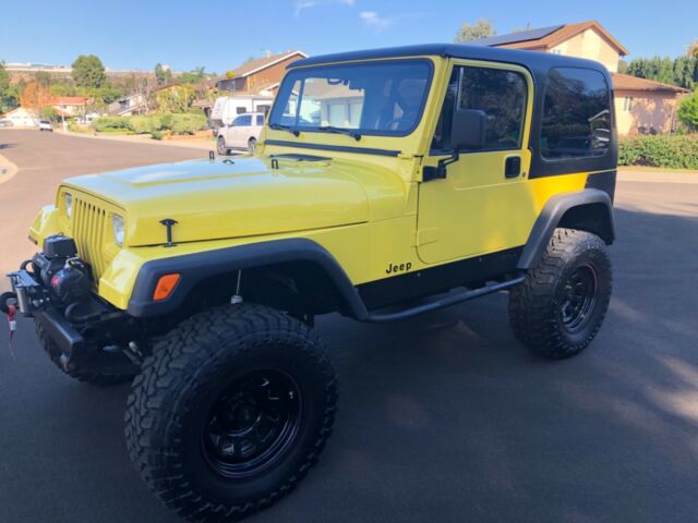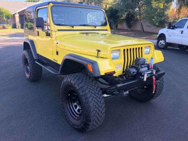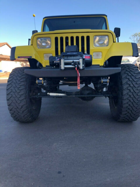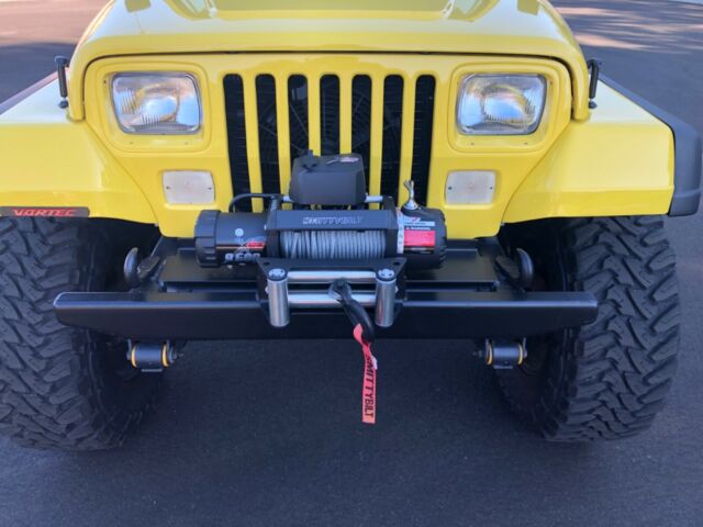 Show or Off Road this first year Wrangler with Vortec 5.3 engine, Custom tuned ECM, Jeep Air conversion and Delco compressor, AX15 5 spd trans, 10.5†clutch with Novak adapter, External slave cylinder, NP 231 transfer case, Tom Woods drive shafts with slip yoke eliminator, Old Man EMU springs with spring over conversion, 8.8 Explorer rear end with Trac lock, 4.56 gears, Front axle has factory 10 chromoly axles, Power grip locker and High Steer, Rear anti wrap bar, Front sway bar disconnects, Corvette exhaust manifolds, Custom 3†exhaust to rear, Roll cage updated with family style roll cage made of 1.75†DOM, Rear seat harnesses, Four Wheel Disc brakes, Custom TJ fender flares, Fab Tech body armor with LED tail lights, 17x9 US wheels, Toyo 35x12.50x17 open country tires (5), Hard top with full doors and painted to match half doors, Updated glue in windshield, New rubber seals and gaskets, Pioneer stereo, Winch and custom bumpers, Clean Arizona title in hand. Restored from a rust free Arizona Jeep - 2 stage Dupont paint. No expense spared - over 25k invested!