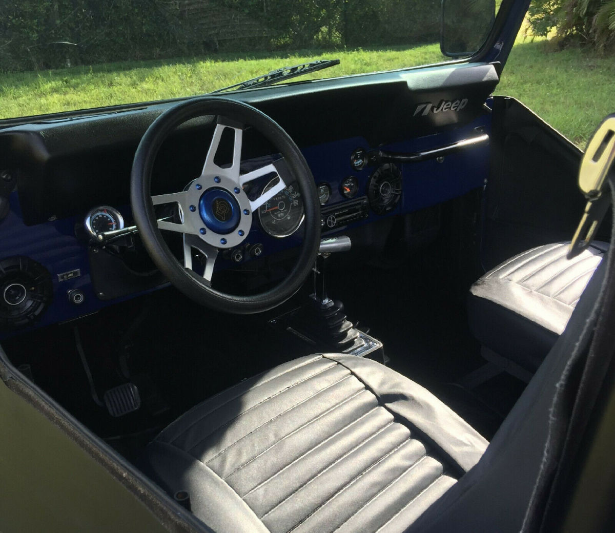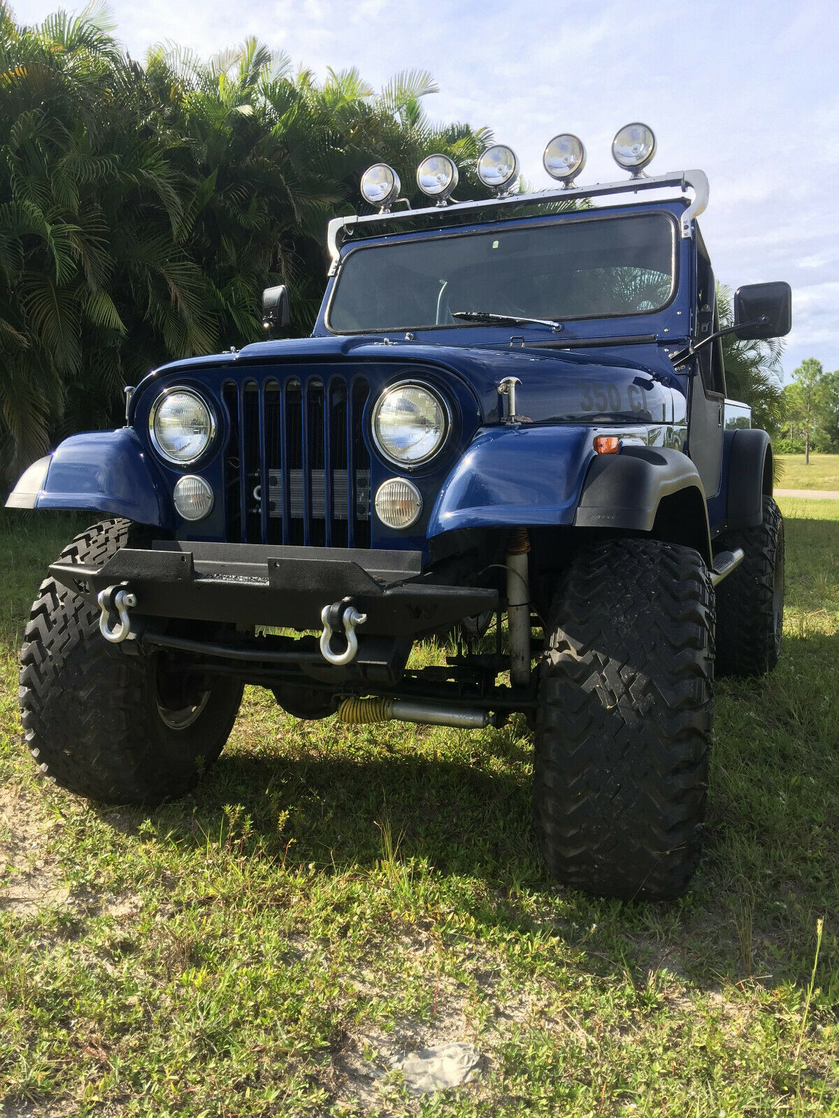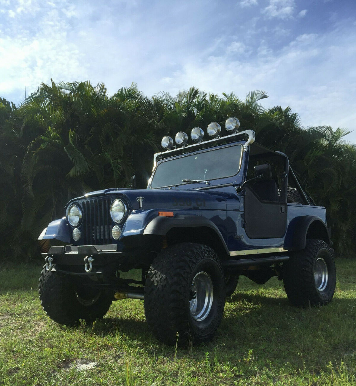 You only live once! Look around. You wont find a cleaner Jeep or a better deal on the internet then this! Comparable Jeeps for sale are valued $20,000-$25,000+ dollars. Price Listed: only $15,000. Super Slick 1982 Jeep Cj7 with a very strong Chevy small block 350 engine backed up by a TH400 automatic transmission. Motor has less then 10,000 miles on it. It is also equipped with power steering and four wheel disc brakes. It comes with a soft top minus the rear window which can be ordered separately from Bestop. New Sony radio with 2 Kicker 150W front speakers. New full chassis floor carpet and Bestop seat covers. New Bestop rear seat with seat belts. Under dash LED multi color lighting. KC flood lights. Aftermarket front and rear bumpers. Side nerf bar steps, Warn hubs, Eagle polished aluminum wheels with 36x14.50-15LT Mickey Thompson Baja belted tires. B&M Shifter, dual Flowmaster mufflers, new fan clutch, new heater core, new master cylinder. The engine is equipped with a Holley 4 bbl. sitting on top of a Weiand intake manifold, roller rockers and coated headers. Also installed is a fairly new Bikini top. The Jeep is road worthy and a ton of fun to drive. A real eye catcher and conversational piece everywhere you go. Word of Warning: I would not recommend buying this beast for a young driver. |