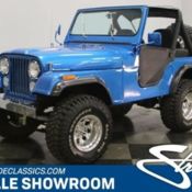 With its V8 power, lifted suspension, and true 4x4 prowess, this 1979 Jeep CJ5 Renegade shouts to you, "Let's go play in the dirt!" But with the glossy paint and stylish execution it's also quite an attention-grabber in-town, too. That's why you know it's one awesome total package. This Jeep is distinctive from the first moment you lay eyes on it. The gray paint has a very rugged look, and then the sunlight hits it, and the metallic elements radiate the kind of luster that only comes from investing in a professional modern application. It's a color that looks great against the new silver Renegade graphics package on the hood. At the same time, the gray is also nice against the side steps, black fender flares, and upgraded Smittybilt bumpers w/brush gauged up front. There's even a dash of flair with the upgraded side mirrors and 15-inch Eagle alloys. So the overall look is one well done total package. A Jeep like this was meant to be open to the world, and so you have that same black and gray appeal to coordinate with the outside. This has all the right Jeep features you want, like newer durable vinyl on the seats, padded roll bar, and a new bikini top. There are also nice upgrades like the grippy grant sports steering wheel and SunPro auxiliary gauges complement the large speedometer. There's even an AM/FM/CD stereo with USB input so you can bring your best tunes along with you in this go-anywhere Jeep. The final piece to a great Jeep is proper power. AMC's 304 cubic-inch V8 has the right horsepower and torque to get you into and out of trouble. In fact, this one is enhanced for extra duty thanks to a power upgrade from the Edelbrock four-barrel carburetor, Edelbrock intake, and long tube headers feeding the dual exhaust. Plus, you even have the right supporting component, like the HEI ignition and an aluminum radiator. And the three-speed manual transmission gives you proper control over it all. The lifted stance, Rough Country suspension components, and Cooper Discoverer tires work nicely to enhance the 4x4's off-toad ability. Plus, there's great anytime driving features like the power steering and front disc brakes. This Jeep was made to go farther and look better doing it, so it's exactly what you want in a classic for so and go. Don't miss out, call today! |