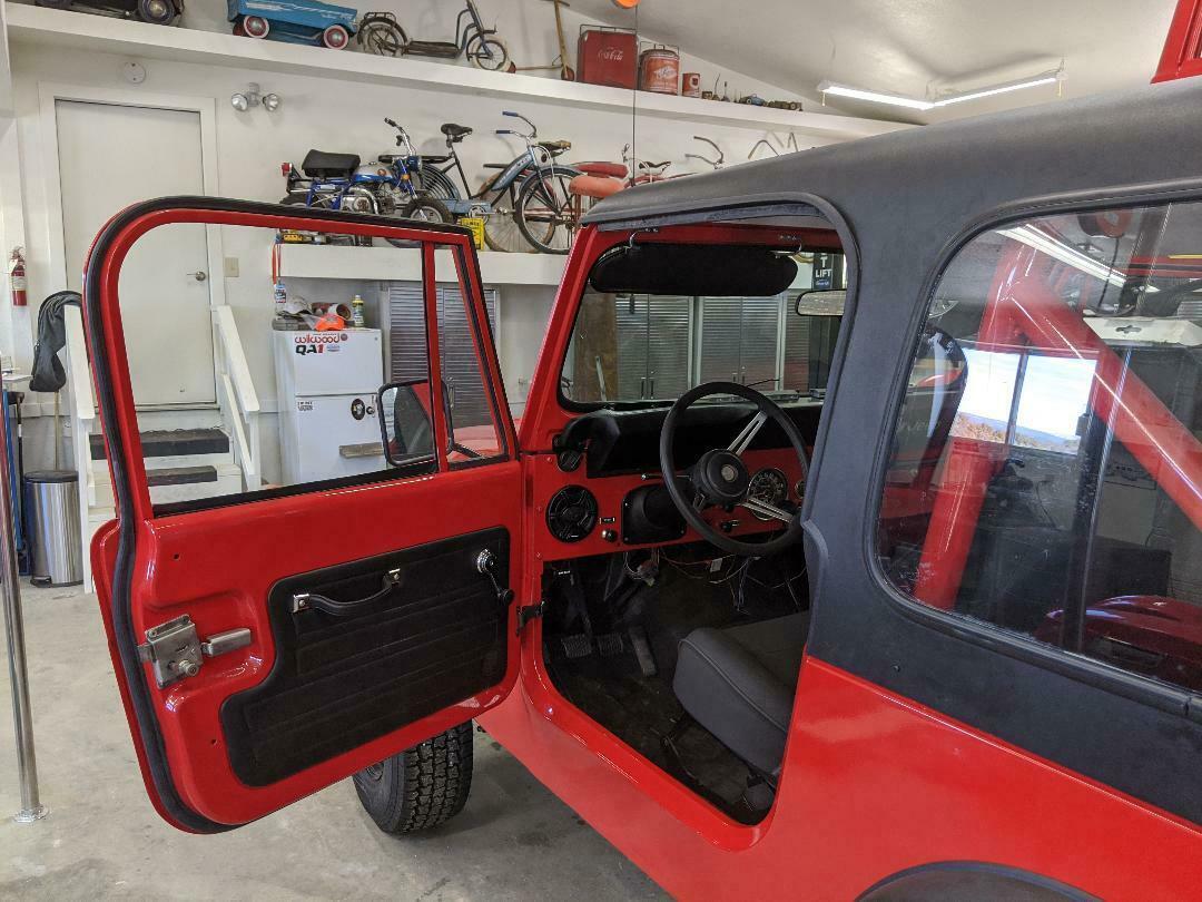 1980 Jeep Cj7 Beautiful restoration. Jeep tub has NO RUST ever. No patch panels. New paint,new wheels, new tires ( all 5 wheels and tires match ), Rancho shocks, new LED headlights and taillights, new front turn signals, new side marker lights, new exhaust from manifold to the back, new tie rods, new drag link, new windshield, new gas tank, straps, sending unit, new water pump, carburetor, radiator, hoses, alternator, battery, front seats, shift boots, door panels, glove box, stereo, all new weatherstripping,sun visors, mirrors ( inside and out ), dash pad, dash labels, dash knobs, dimmer switch . Did I say almost everything is new and this Jeep was rust free!This Jeep has the 2.5L 4 cyl. manual 4-speed, power steering and power brakes and runs great. mileage is unknown. Super hard to find a CJ7 with no rust or patch panels. Top is mint condition.Buyer responsible for shipping