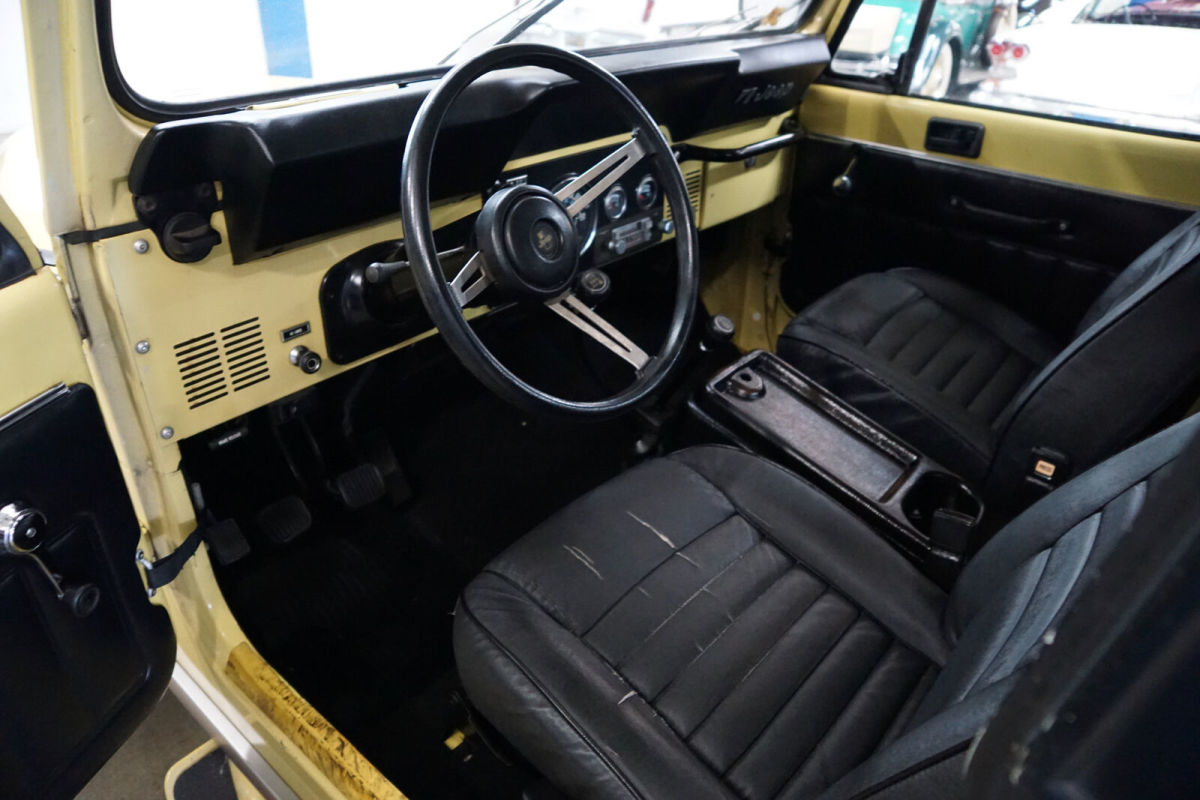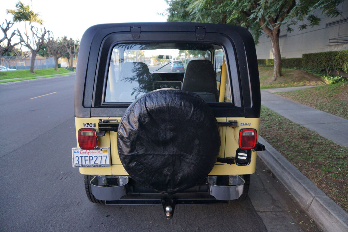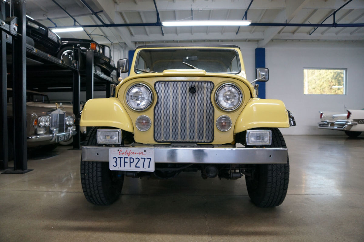 West Coast Classics are proud to present an exceptional example of this rare and very desirable and collectible 1984, two years from the very last year of the legendary CJ Series, American Motors Jeep 4WD and a rare all stock and original model with the upgraded 4.2L 6 cylinder engine with only one southern California owner since new and loaded with factory options including; 4.2L 6 cyl engine ($250) Center Console ($69) Rear seat with dual seat belts ($213) 5-speed manual overdrive transmission ($233) Power steering ($256) 3.31/1 Axle Ratio ($37) Hardtop with Doors ($476) Body side step ($28) Floor Carpet ($116) California Emissions System ($109) Halogen Fog Lamps ($96) Extra Capacity Fuel Tank ($53) CJ Value Package ($953) which includes: Special Paint Color Black Hi Back Denim Seat Chrome Front Bumpers Decor Group Dual Chrome outside mirrors Color keyed styled steel wheels with trim rings Voted as none less than the #2 of the "9 Hottest Collectible Cars Right Now for 2018" by none less than the 'Hagerty Bull Market List' for 2018, with two-thirds of quotes that are requested from Hagerty coming from Gen X and Millennials. This interest from those younger generations means it stands to do well, as those are the collectors who are actively growing their collections. After remaining in production through a range of model numbers, and several corporate parents, the Jeep CJ line was officially ended in 1986. More than 1.5 million CJ Jeeps were built, having continued the same basic body style for 45 years since the Jeep first appeared. The Jeep CJ series of 1976-86 has the imprint 'Since 1941' somewhere in the interior, although Willys-Overland had not officially been granted the Jeep trademark until 1950, well after the company had already developed a good business selling civilian versions of the wartime Jeep. Probably the smartest thing American Motors president Roy Chapin ever did was acquire Kaiser-Jeep Corporation in 1970. In 1976 the CJ-7 appeared as basically a stretched CJ-5 to compete with a growing assortment of rivals, fitted with the first factory-equipped hard top and steel doors among its upgrades. It would carry the CJ line for the next 11 years, right through AMCs merger first with Renault, then with Chrysler. Even after 30 years of CJ development, you didnt have to squint too hard to see the old hero of Normandy and Guadalcanal in the 7's sheetmetal. But if the design still looked inspired by cardboard shipping boxes, the changes were significant, including a longer wheelbase for more stability and a roomier and fancier cockpit. Even so, with the top and doors removed, the windscreen folded, and the CJ-7 put the wind in your face and bugs in your teeth just the way its predecessors had been doing since 1945! This particular example was recently acquired by us from its original southern California owner and has been serviced locally here in Redondo Beach at the renown 'Osborn's Automotive', voted #1 auto repair shop in the South Bay for over 5 years, and is a vehicle that was obviously always well maintained and garaged since new with no accident damage and reportedly never taken off road and which boasts the 5 spd manual transmission and a 2-speed transfer case, power steering (a very underrated option on these Jeeps and endlessly useful & required!) and a removable factory hardtop with matching steel doors, so it seals up well if you're planning on using it year-round.! The Jeep was sold new at 'Castle AMC Jeep Renault' of National City, CA on 8/15/1984 and the still quite stunning original 'Sunshine Yellow' factory color paint is in excellent condition and the original stock Black Hi-Back bucket seats interior is also in great condition throughout. Oozing pride of ownership with obviously no accidents, damage or rust as evidenced by the vehicles all original paint! The Jeep will be sold with its original owners manuals, window sticker and purchase order and boasts a clean Carfax report! This extraordinarily well maintained and highly desirable original southern California owner and obviously always garaged 1984 Jeep CJ7 4WD 4.2L SUV runs strong, the transmission shifts smoothly through the gears and the temperature always remains cool - drives exactly like such a well maintained and cared for vehicle should! You will look long and hard to find a finer or nicer driving example of this all stock and original legendary CJ7, an obviously mostly always garaged example owned by only one very careful and mature non-smoking owner since new! |