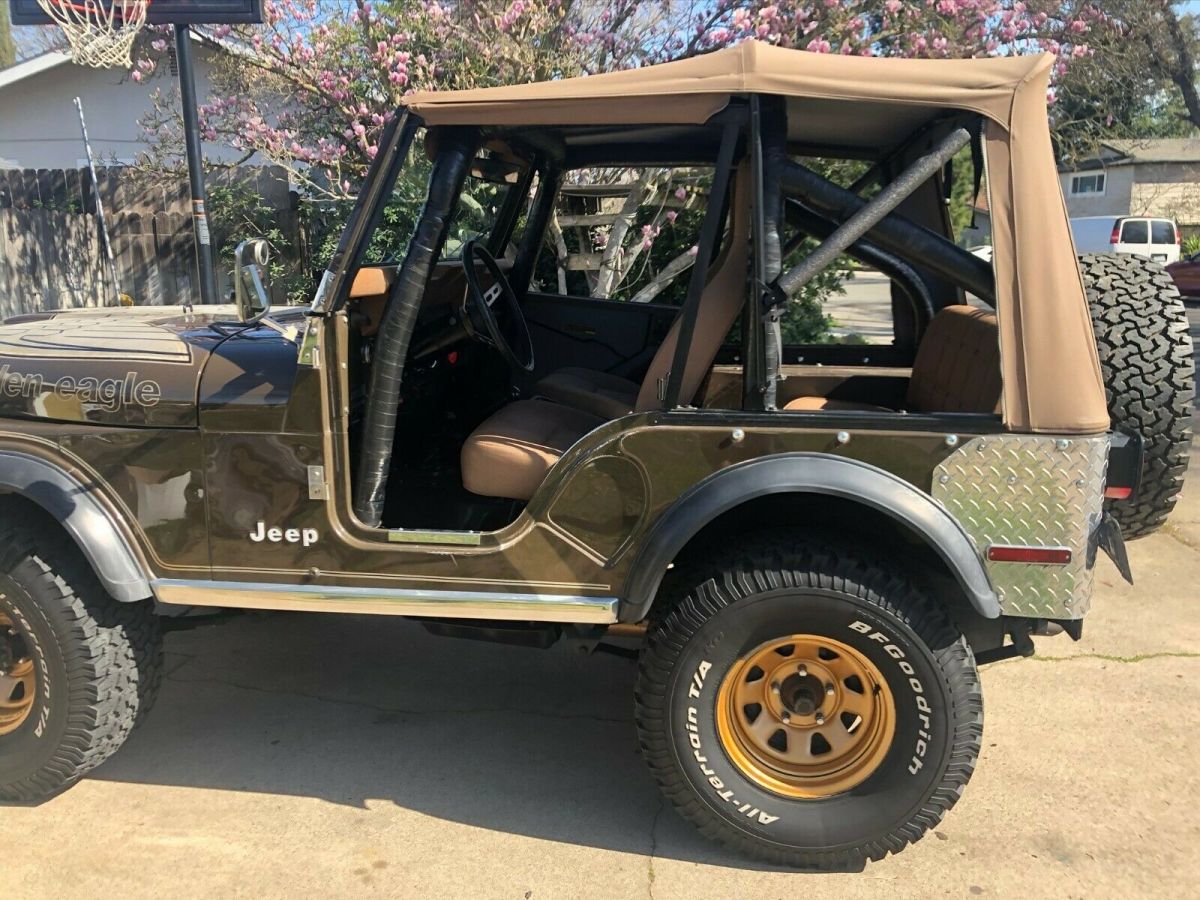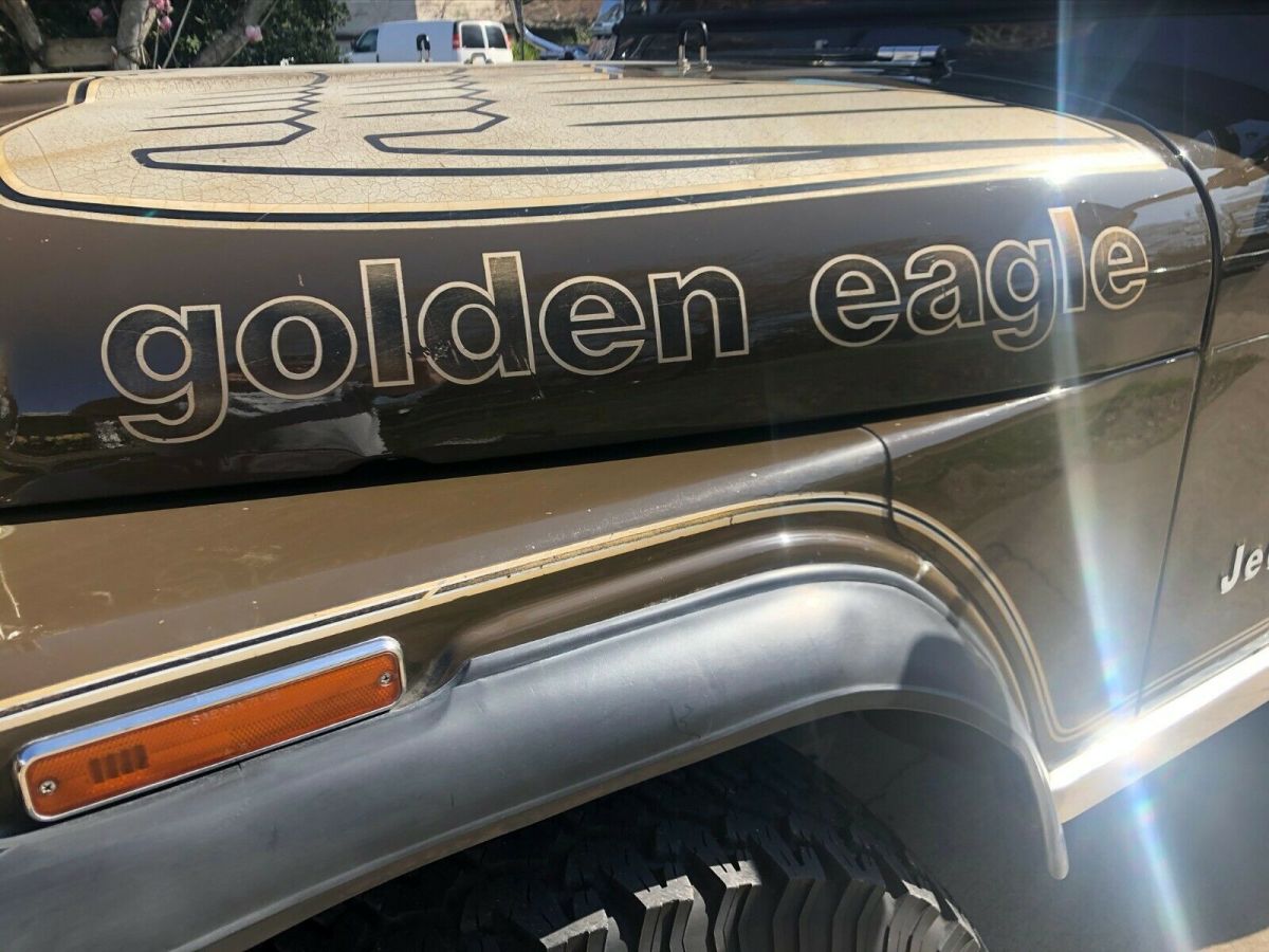 This Jeep was for hanging around a buddies garage and I convinced him to sell it to me. It's the rarest of all Jeeps, as not only is it a LEVIS Denim Edition, it's the Golden Eagle. All the paint and decals are original and in good shape. There are many Golden Eagles out there, but most are clones, or at best there is no way to prove that they are original Golden Eagles. This one has all the original paint and decals and is 100% authentic. To top it off, it has the ultra-rare heavy duty T-18 transmission, power steering, solid brakes working tachometer and the clock. The Denim Edition is just amazing - the dash and rear seat are in great shape. The front seats were taken out long ago. It's been upgraded to an ARB air powered locker in the rear of the AMC 20 housing and has a good Warn Winch up front. The only non-original component are the Bestop front seats. This Jeep still retains the original Golden Eagle rims - ALL FIVE!It's got the desireable powerful and perfectly tuned, 304 V8, a smooth and easy T18 - 4 speed manual, zero rust, drives like a dream at any reasonable speed. It's got good power brakes and steering. The dash is unmolested and has original radio (uncut) mounting locations intact. It has an appropriate 3" lift. It's smogged for California drivers. The title is clean and ready to go. This Jeep needs absolutely nothing to be a daily driver. Any issues with the driveability have been taken care of and it's ready for another wonderful, pampered life. I can arrange to show the Jeep. It's based in Sacramento California.