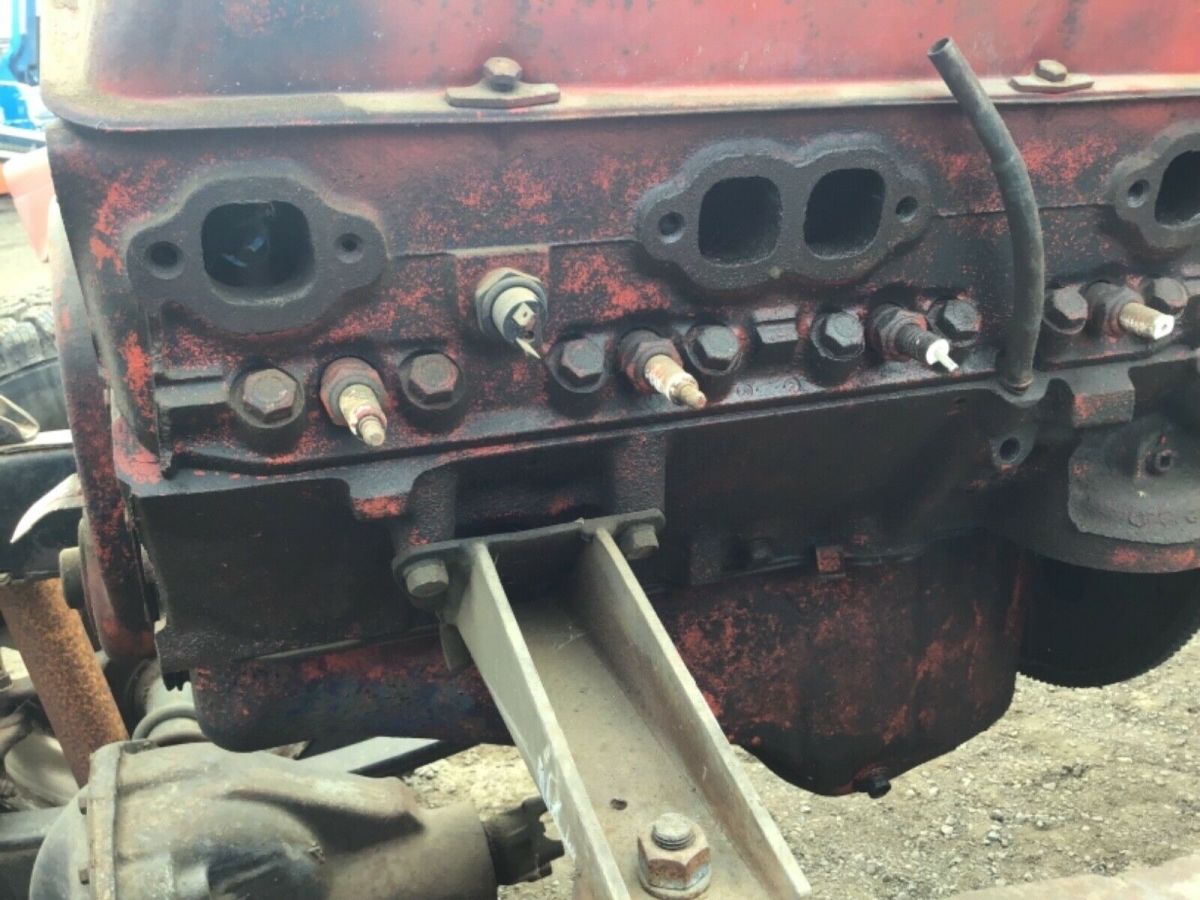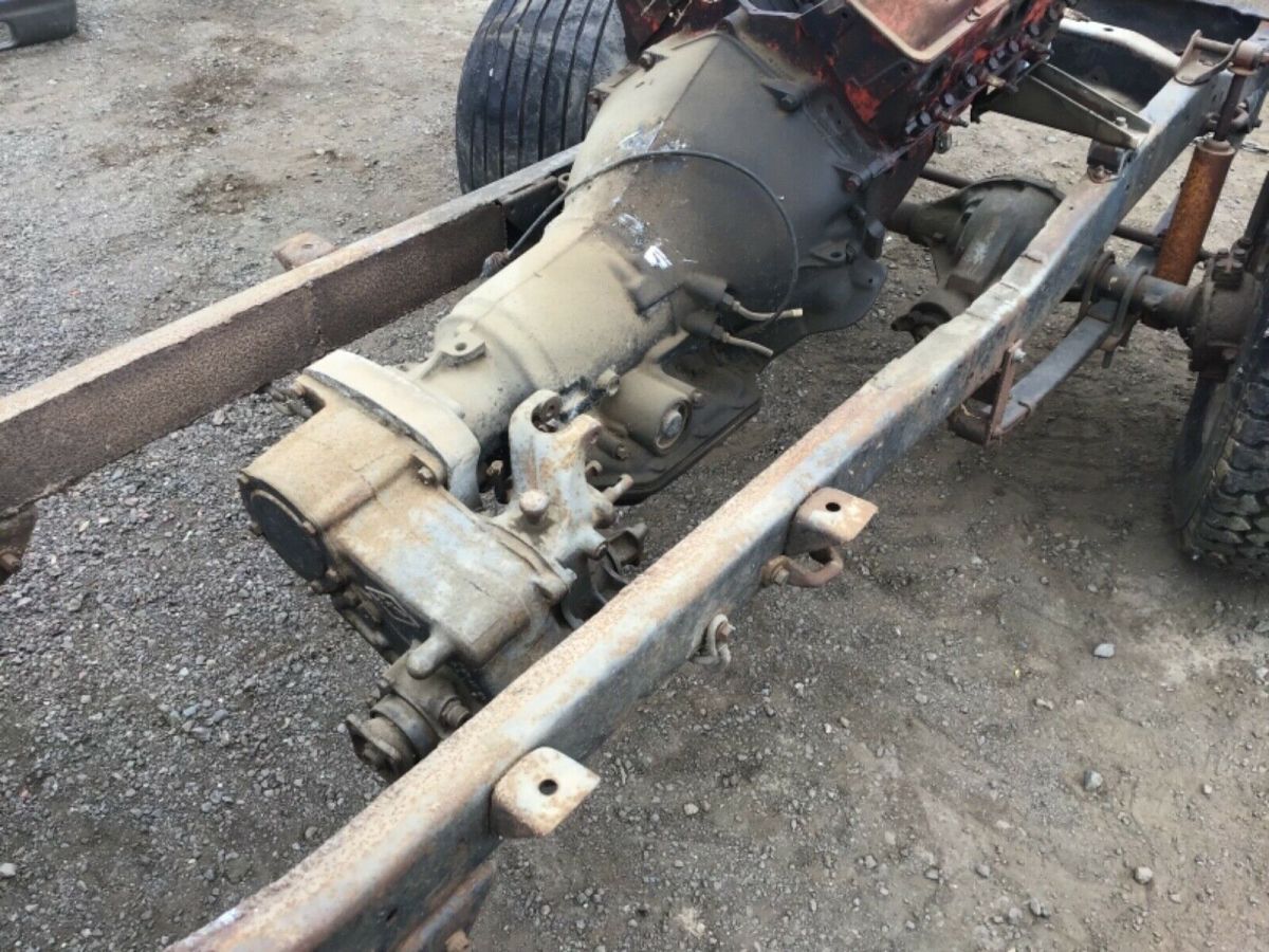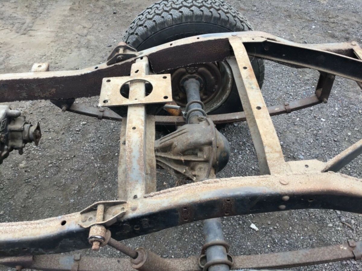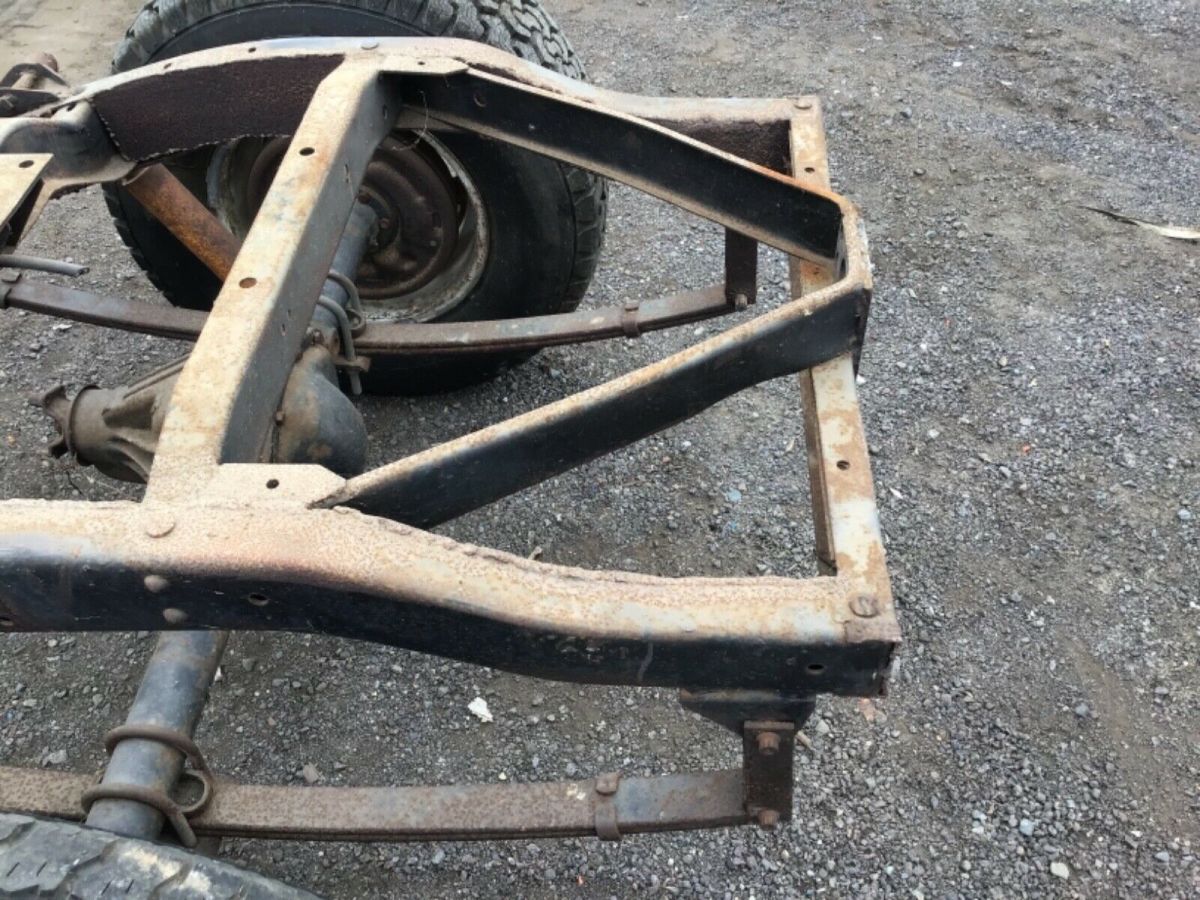 | nice military chassis axles transfer case with turbo 350 trans and adapter small block Chevy. Estate sale losing storage, condition of parts overall not known. Frame is straight and rust free. Easy pick up any size truck can forklift load |