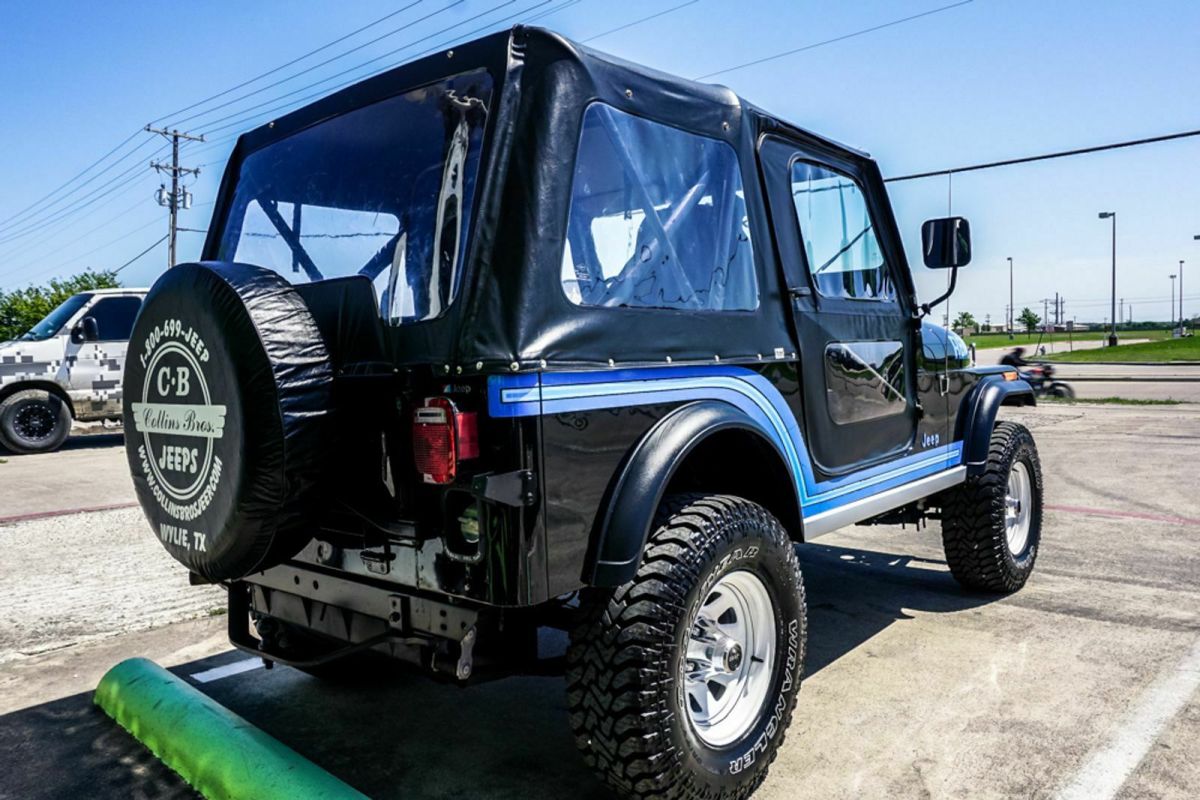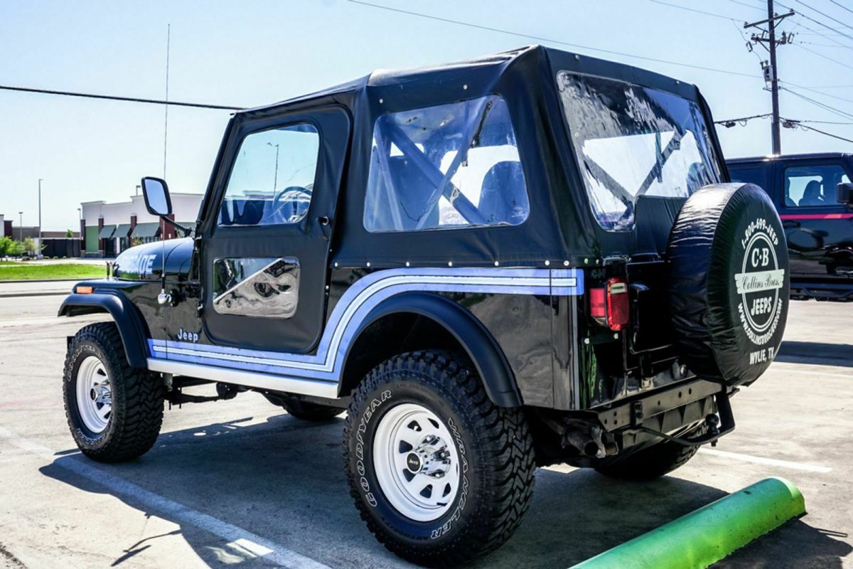 1986 Jeep CJ-7 Renegade Original Classic Black Paint and original stripes that we lightly color sanded and cleared over. No damage history and no paintwork, excellent body, original factory soft top with AS-6 date code, original black denim seats, nicely optioned Jeep, 258 4.2 liter 6 cylinder, T-176 4 speed manual transmission, PS, PB, tilt, 20 gallon gas tank, AM/FM radio, center console, full factory carpet, Last of A Great Breed dash plaque, rear factory tow drawbar, factory stock Renegade White wagon wheels with excellent 31x10.50x15 Goodyear Wranglers. Recently serviced only 71k actual miles. Honest unrestored well-kept not abused or modified, last year of the CJ-7. Ready to enjoy. Worldwide shipping is available. $26,800.00 Stock# 019110 At our dealership we work very hard to accurately describe our vehicles through text descriptions and elaborate photos. When you purchase a pre-owned vehicle it is not a new vehicle. Any used vehicle can have normal wear and blemishes. Before placing a bid please read the descriptions thoroughly and view all pictures. |