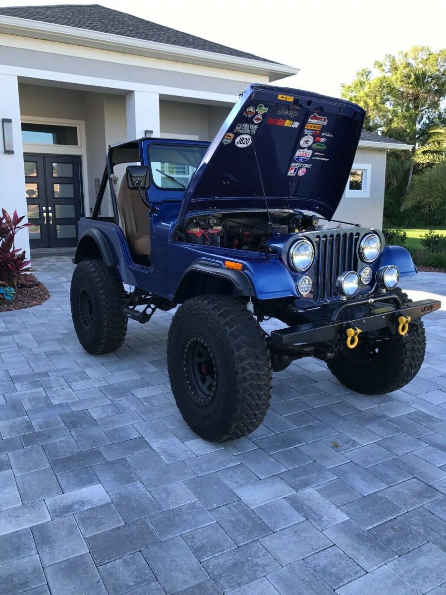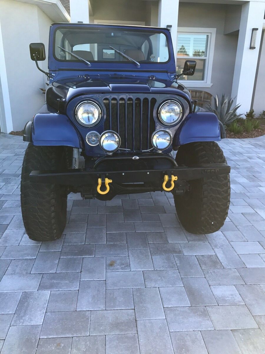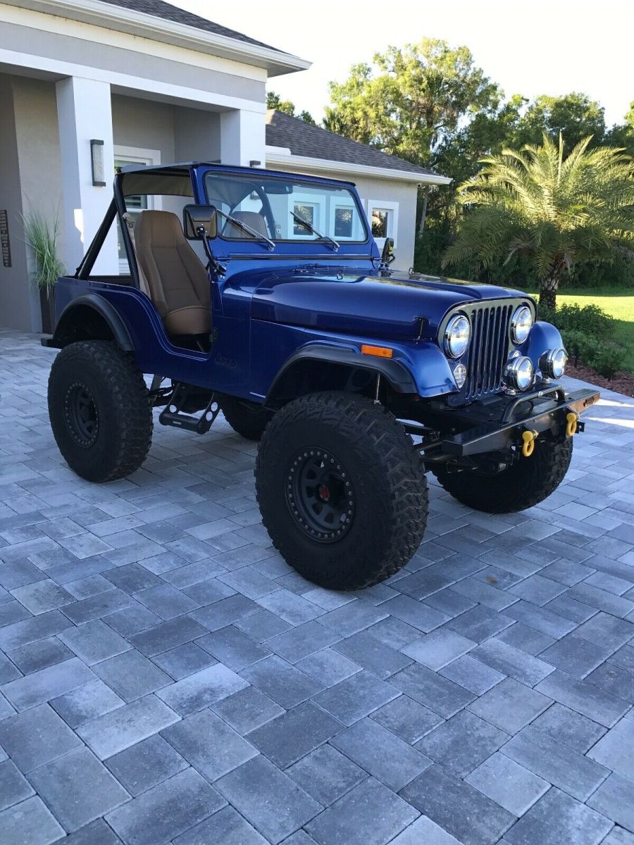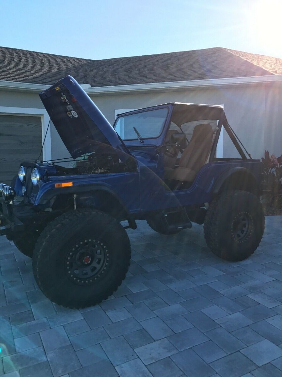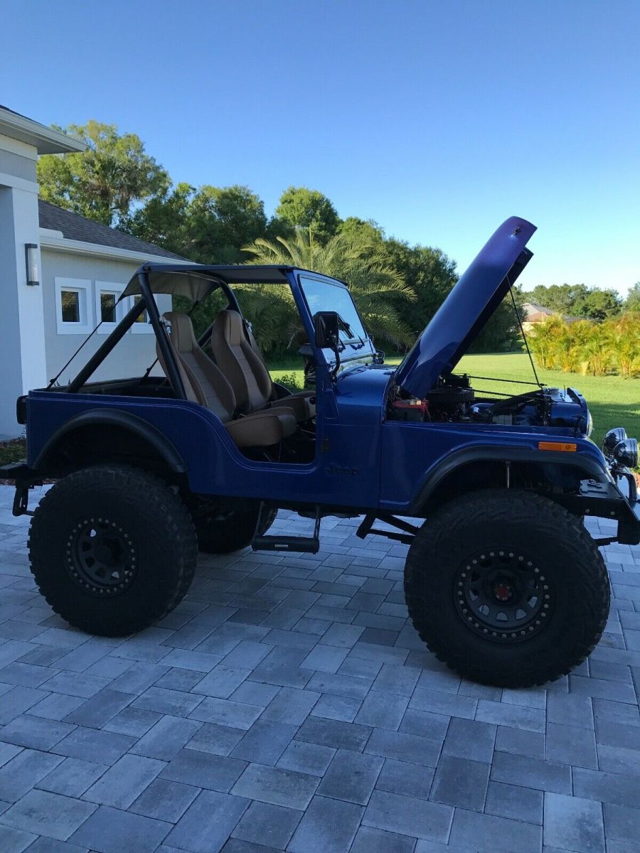This is a 1980 CJ 5 SBC 4 speed. T176 with a D300 transfer case. Dana 44 rear with disc breaks and a Toyota Land Cruiser front axel with over steer. Spring over suspension. Tires and wheels brand new 39x12.5xR17, with spare. Tire carrier and jack. Sniper Holley fuel injection, brand new painless wiring throughout, custom gauges from intellitronix, hydraulic clutch. New Bestop seats, doors, sun visors, and bikini top. Brand new steering from Flaming River. Rear seat is not new (original black vinyl). Not installed. Has tow hitch for front as a tow behind.Has Jeep cover. Needs rear leaf springs and fog lights hooked up. Bought a month ago for my son and now his job plans have changed. A lot of money already invested!!! Contact me for video or more pictures. Original Florida Jeep.