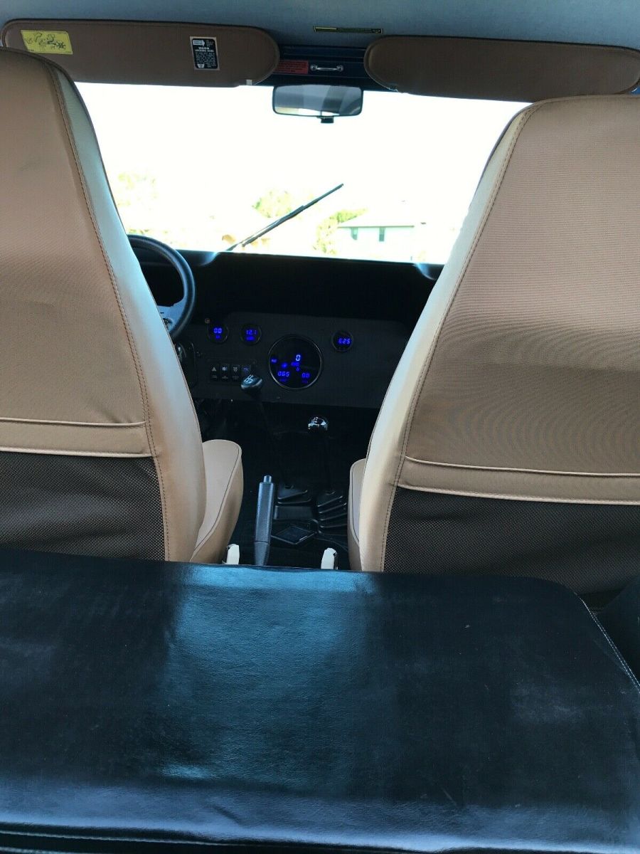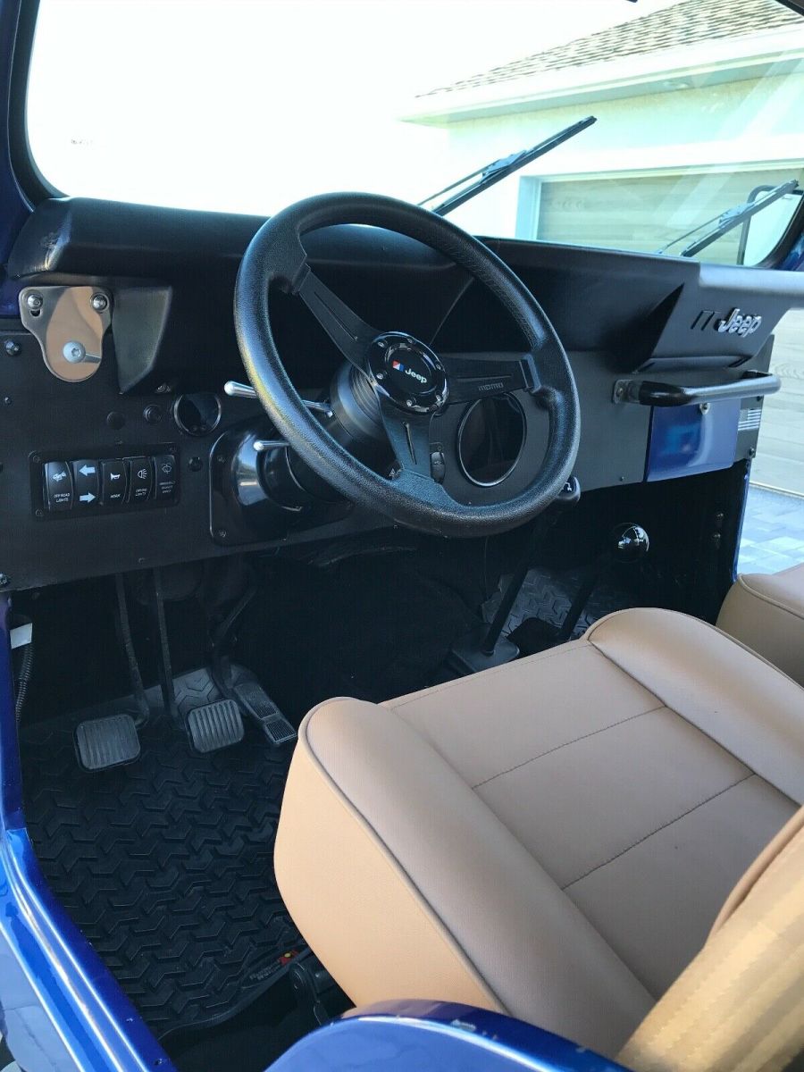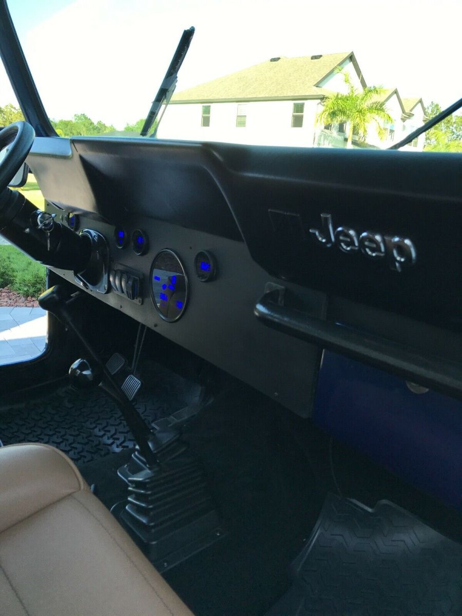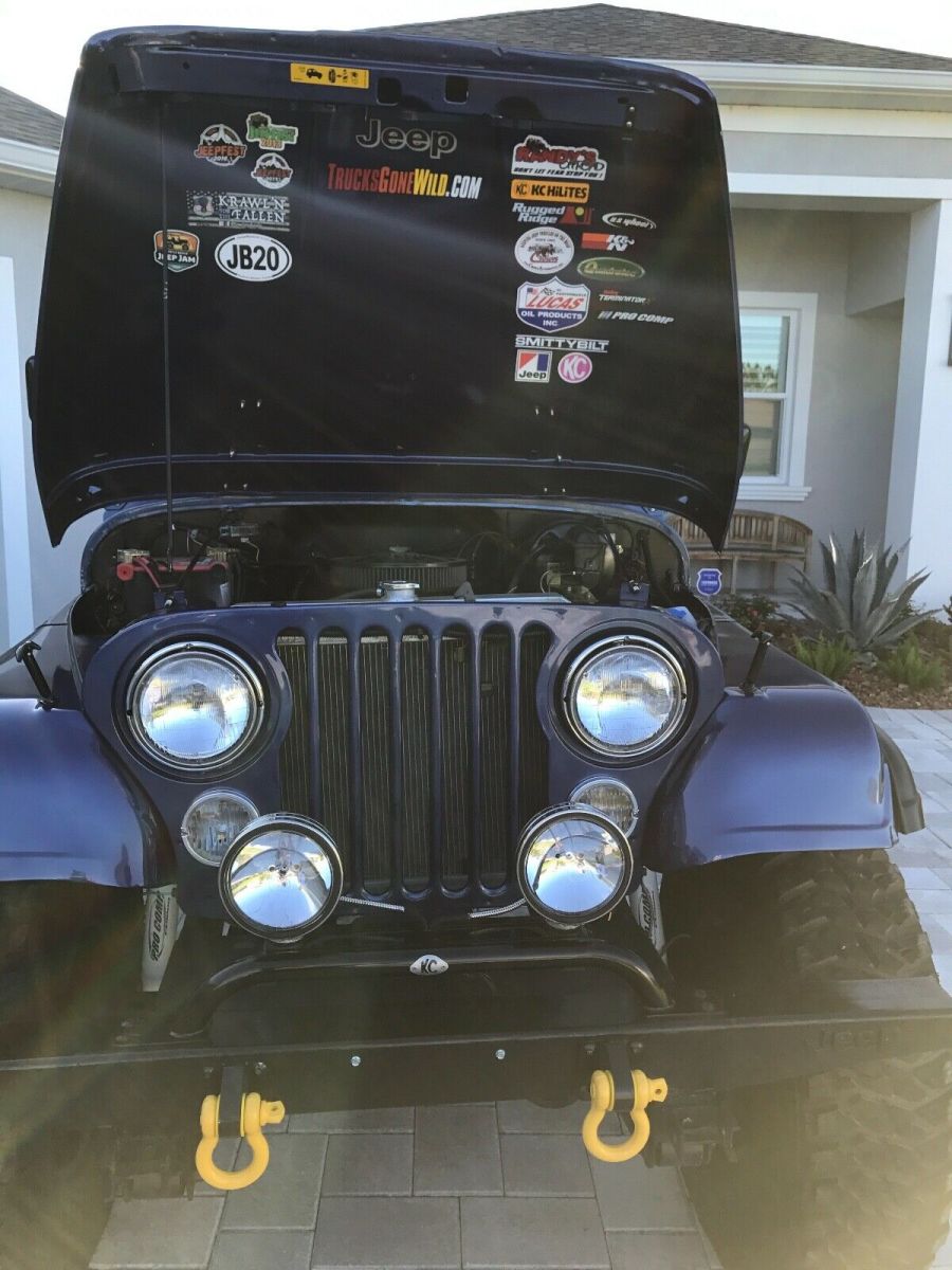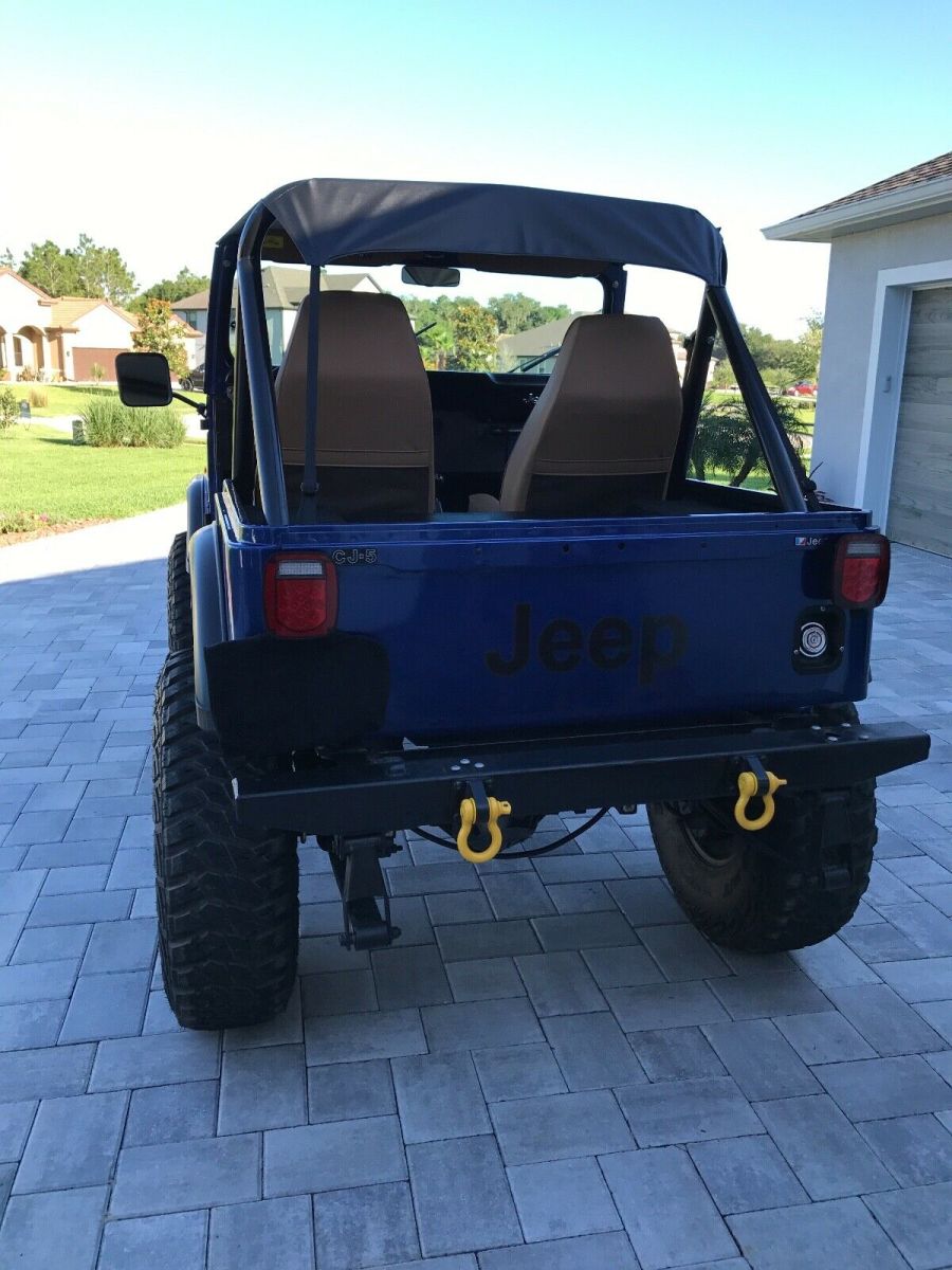 This is a 1980 CJ 5 SBC 4 speed. T176 with a D300 transfer case. Dana 44 rear with disc breaks and a Toyota Land Cruiser front axel with over steer. Spring over suspension. Tires and wheels brand new 39x12.5xR17, with spare. Tire carrier and jack. Sniper Holley fuel injection, brand new painless wiring throughout, custom gauges from intellitronix, hydraulic clutch. New Bestop seats, doors, sun visors, and bikini top. Brand new steering from Flaming River. Rear seat is not new (original black vinyl). Not installed. Has tow hitch for front as a tow behind.Has Jeep cover. Needs rear leaf springs and fog lights hooked up. Bought a month ago for my son and now his job plans have changed. A lot of money already invested!!! Contact me for video or more pictures. Original Florida Jeep.