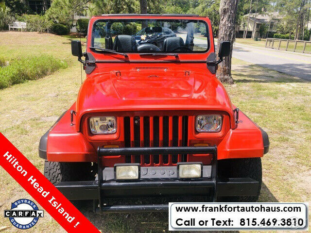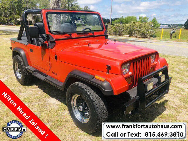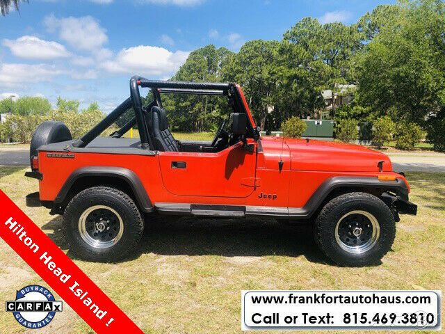 1987 Jeep Wrangle, Currently located on Hilton Head Island South Carolina ! Maintained to perfection since new ! Extensive service records on CARFAX, low low certified mileag, Clean CARFAX. 2D Convertible inline 4.2 inline six cylinder 4WD Non Smoker, Alloy Wheels, Premium Sound System, 4x4/4-wheel drive, 2D Convertible, 4.2 in-line six cylinder 5-Speed Manual, 4WD. 1987Jeep Wrangler Want to learn more? Frankfort Auto Haus is a family owned dealership established since 1978. I personally buy and drive every vehicle I sell, one of the reasons I have been in business over 40 years and have 1000's of happy customers. Every vehicle I sell comes with a free car fax vehicle history report available on our website www.frankfortautohaus.com . We can arrange low cost financing and shipping to your door worldwide. Visit us today at 19915 s. La Grange Road,Frankfor, Il 60423. (30 min south of Chicago). Contact Information: TEXT or CALL us at 815-469-3810.