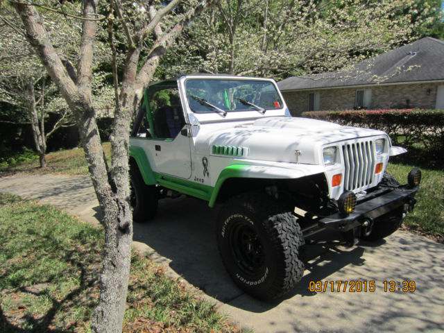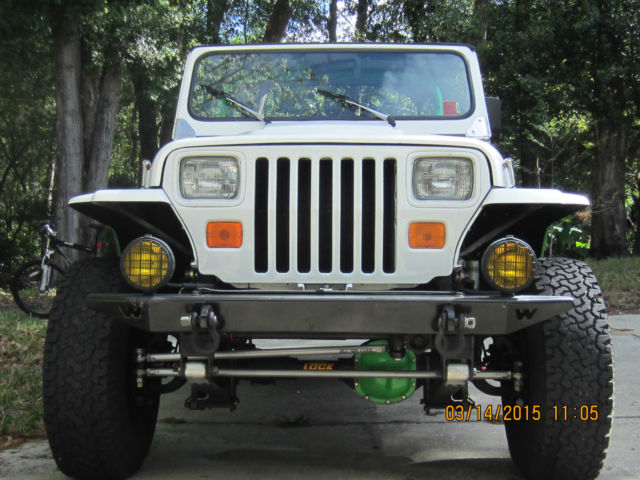| Custom built hybrid Jeep project. Daily driver and crawler purpose-built from bare frame in 2004-2005. Titled in Florida as 1988 Wrangler. All build receipts and follow-up service work documented and available for review. Specs: Wrangler frame. Blasted. acid treated. rewelded at stress points and coated with GM Chassis Black and POR-15. Dana 30. stripped/blasted and recoated. 4. 10 Mopar gears with LOCK-RITE. WARN Lockable Hubs. USA ALLOY axle seals. TJ axles shafts. YUKON CroMoly Stubs. Dana 35. stripped/blasted. and recoated. 4. 10 Mopar gears with LOCK-RITE. 1995 factory axles. SUPERIOR Axle Truss. Carbon Fiber (FLEX-A-FORM) Suspension Springs with Daystar 1” body pucks and M. O. R. E. HD greasable shackles and poly bushings. M. O. R. E. SRS with Buggy Spring hangar and JK Disconnects. BULLETPROOF CROSSOVER STEERING. Front disc brakes with EBC Green Ceramic pads. new upper/lower joints. Rear standard drums with EBC semi-metallic shoes. NAVAJO Dual Diaphragn power brakes with Corvette MC. WILDWOOD Residual Pressure Valve. and SUMMIT Proportioning Valve. RUSSEL/GOODRICH Steel Lines. BILSTEIN 5150 Remote reservoir front and 5100 matched rear. shocksTOM WOODS Driveshafts. Double Cardan rear/custom front. JB INDUSTRIES 6 planetary. HD NP231 Transfer Case. MAN-TRANS AX-15 with Luk Clutch and bearing. GOLEN built 4. 6 AMC stroker motor with Harland Roller Rockers. 7120 head casting. V-belt configuration. FLOW-KOOLER water pump. 26. 00 miles. HOLLEY custom tuned 390cfm carb w/ fuel pressure gauge and external electric pump. OFFENHAUSER Dual-Plane Manifold Cerama-coated CLIFFORD dual-exit Headers. Stainless BORLA Dual Exhaust. GM HEI Ignition with DUI Spiral-core. Fiberglass wrap Cables. ACCEL HD internal coil. CRANE tunable vacuum unit. 20. ROCKFORD-FOSGATE (rear). Clarion (front) amplifiers. SONY CD with 6 ½” Pioneer front and 6x9 Audiodyne rear. 10” Bazooka sub. Aluminum 2-core radiator with Electric fan and remote on-off. CENTECH Wiring harness. Fiberglass Hood and Front Fenders. 1995 Wrangler tub with White Rhino CoatPOISON SPYDER Rock RailsWARN Front Bumper. Fiberglass CJ windshield frame with YJ wiper system. new CJ Glass. BFG AT KO 33 x 10. 50 tires on ‘D’ 8 ½ x 15 wheels. Full (5th) spare tire. BESTTOP Bikini and Deck Duster. HI-LIFT jack. DELTA Amber fog lamps. ABC Fire Extinguisher. SMITTYBILT Trail seats with 5 pt. RJS restraints. And more stuff…It’s been my hobby for over 10 years. was assembled with ALL new parts and been meticulously maintained and upgraded or modified when I had an urge. Runs on 91 octane/Brad Penn High zinc oils/Amsoil and Redline gear and Trans fluids. All hardware is either Grade 8. or Grade 10 ARP Stainless bolts and screws. NOTE: There are minor cosmetic flaws (it IS driven after all ). and an annoying hard shift into 4th gear only that has been with the vehicle since purchase of the transmission in 2006. this is NOT your granny’s church car. and it is MUCH MODIFIED from stock. If you don’t plan to learn to work on your Jeep. or if you think your 16 year old can drive this…go get something else. Pictures are current as of posting date…it is a hobby. so small things may change before you buy it…ask! No Cashier’s Checks/Money Orders/or other funky nonsense arrangements. I will not ‘hold’ money for you for ‘shipping’. I suggest you personally examine. or properly hire an intermediate for conclusion of sale if you do not intend to be here. Title & vehicle will be surrendered with full. verified payment only. You may drive away. or transport at your option. Additional. specific pictures can be taken upon request. I am happy to discuss any aspect of my Jeep to a serious buyer. Sold ‘As is’. Auction winner only. There are a bunch of extra parts and even an ‘in process’ new motor if you are interested. On Mar-22-15 at 07:46:24 PDT. seller added the following information:Custom built hybrid Jeep project. Daily driver and crawler purpose-built from bare frame in 2004-2005. Titled in Florida as 1988 Wrangler. All build receipts and follow-up service work documented and available for review. Specs: 1. Wrangler frame. Blasted. acid treated. rewelded at stress points and coated with GM Chassis Black and POR-15. 2. Dana 30. stripped/blasted and recoated. 4. 10 Mopar gears with LOCK-RITE. WARN Lockable Hubs. USA ALLOY axle seals. TJ axles shafts. YUKON CroMoly Stubs. 3. Dana 35. stripped/blasted. and recoated. 4. 10 Mopar gears with LOCK-RITE. 1995 factory axles. SUPERIOR Axle Truss. 4. Carbon Fiber (FLEX-A-FORM) Suspension Springs with Daystar 1” body pucks and M. O. R. E. HD greasable shackles and poly bushings. 5. M. O. R. E. SRS with Buggy Spring hangar and JK Disconnects. 6. BULLETPROOF CROSSOVER STEERING. 7. Front disc brakes with EBC Green Ceramic pads. new upper/lower joints. 8. Rear standard drums with EBC semi-metallic shoes. 9. NAVAJO Dual Diaphragn power brakes with Corvette MC. WILDWOOD Residual Pressure Valve. and SUMMIT Proportioning Valve. RUSSEL/GOODRICH Steel Lines. 10. BILSTEIN 5150 Remote reservoir front and 5100 matched rear. shocks 11. TOM WOODS Driveshafts. Double Cardan rear/custom front. 12. JB INDUSTRIES 6 planetary. HD NP231 Transfer Case. 13. MAN-TRANS AX-15 with Luk Clutch and bearing. 14. GOLEN built 4. 6 AMC stroker motor with Harland Roller Rockers. 7120 head casting. V-belt configuration. FLOW-KOOLER water pump. 26. 00 miles. 15. HOLLEY custom tuned 390cfm carb w/ fuel pressure gauge and external electric pump. 16. OFFENHAUSER Dual-Plane Manifold 17. Cerama-coated CLIFFORD dual-exit Headers. 18. Stainless BORLA Dual Exhaust. 19. GM HEI Ignition with DUI Spiral-core. Fiberglass wrap Cables. ACCEL HD internal coil. CRANE tunable vacuum unit. 20. ROCKFORD-FOSGATE (rear). Clarion (front) amplifiers. 21. SONY CD with 6 ½” Pioneer front and 6x9 Audiodyne rear. 10” Bazooka sub. 22. Aluminum 2-core radiator with Electric fan and remote on-off. 23. CENTECH Wiring harness. 24. Fiberglass Hood and 