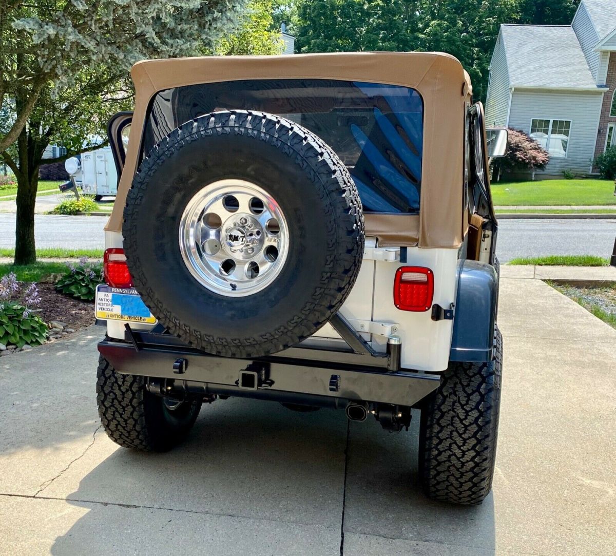 Beautiful 1987 Jeep Wrangler withtub and frame in exceptional condition for its age!Minor dings and scratches in the paint can be easily remedied. Modifications installed: ·AX-15 conversion and master rebuild kit in transmission performed by Lehigh Valley Transmissions ·Rebuilt differential with 4:56 gears and bearings installed by Outten Jeep ·BDS 4 ½†suspension lift ·B&M short throw shifter ·New clutch slave cylinder ·New master cylinder and stainless-steel brake lines ·New Bestop Super top with tinted windows ·New Bestop bikini, deck cover, windjammer, and roll bar padding ·Micky Thompson rims with 35†General Grabbers ·LED headlights and taillights ·A-Z Fabrication front and rear bumpers including rear swing away ·Xenon extended fender flares ·New fuel pump, battery, alternator and distributor ·New Promaster high torque starter ·New front and rear seat belts ·Installed Tuffy hood lock ·Borla cat back exhaust ·Cable actuated front differential lock Extra parts included (but not installed) ·NP 231 Master rebuild kit ·slip yoke eliminator kit ·MOOG front spindles Serious offers only considered. Feel free to reach out with any questions. |